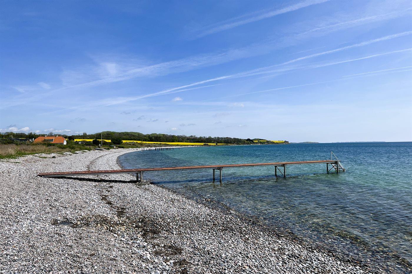 Ferieboligen er beliggende på en 1295 m² stor havegrund. Der er 100 m til havet. Der er en badebro i nærheden. Nærmeste forretning er beliggende i en afstand af 3500 m. Der er en golfbane i en afstand af 9000 m. Til ferieboligen hører åbent terrasseareal. Desuden er der overdækket terrasse. Bålsted. Grill til rådighed. Parkering ved ferieboligen.
