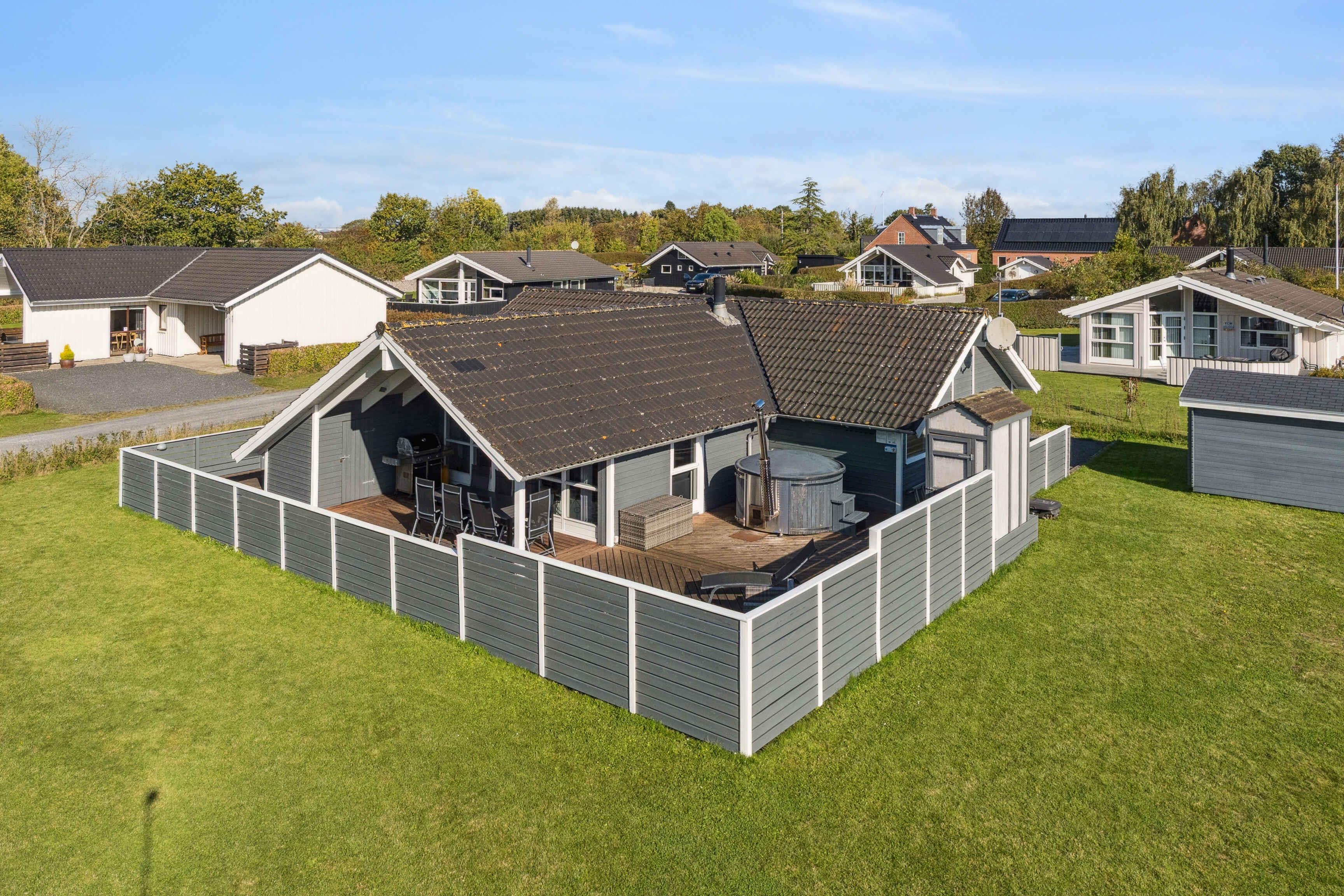 Et ophold her er som skabt til afslapning og gode ferieminder. Sommerhuset på 109 m² rummer fire soveværelser og plads til otte gæster. Soveværelserne er fordelt med 2 i hver side af huset og er derfor ideelt, hvis man rejser 2 familier med børn. Den lyse stue med loft til kip danner rammen om hyggeligt samvær – og de ideelle forhold gør huset perfekt til en ferie med hunde. Terrassen er et sandt fristed. Den store træterrasse skaber trygge rammer for hunde, der kan nyde friheden , mens resten af familien slapper af. En del af terrassen er overdækket, så både sol og sommerregn kan nydes udendørs. På terrassen står vildmarksbadet klar – perfekt til stjernekig og lune aftener. Wellnessoplevelsen fortsætter indendørs, hvor saunaen lokker efter en dag i naturen. I badeværelset findes også et spabad, så både krop og sind kan få en velfortjent pause. Her er fokus på ro, forkælelse og nærvær. Kun 400 meter væk venter stranden. Den brede kystlinje og de mange stier i området gør stedet oplagt til ferier med hunde, som kan boltre sig i naturen og nyde lange gåture langs vandet. Skovområder, grønne stier og åbne vidder ligger lige uden for døren. Området byder på en blanding af natur og hyggelige udflugtsmål. Her findes små havne, cykelruter, fiskemuligheder og nærhed til byer med caféer og lokale oplevelser. Stemningen er rolig og afslappet, men med plads til eventyr – en ideel ramme for både mennesker og deres firbenede venner.