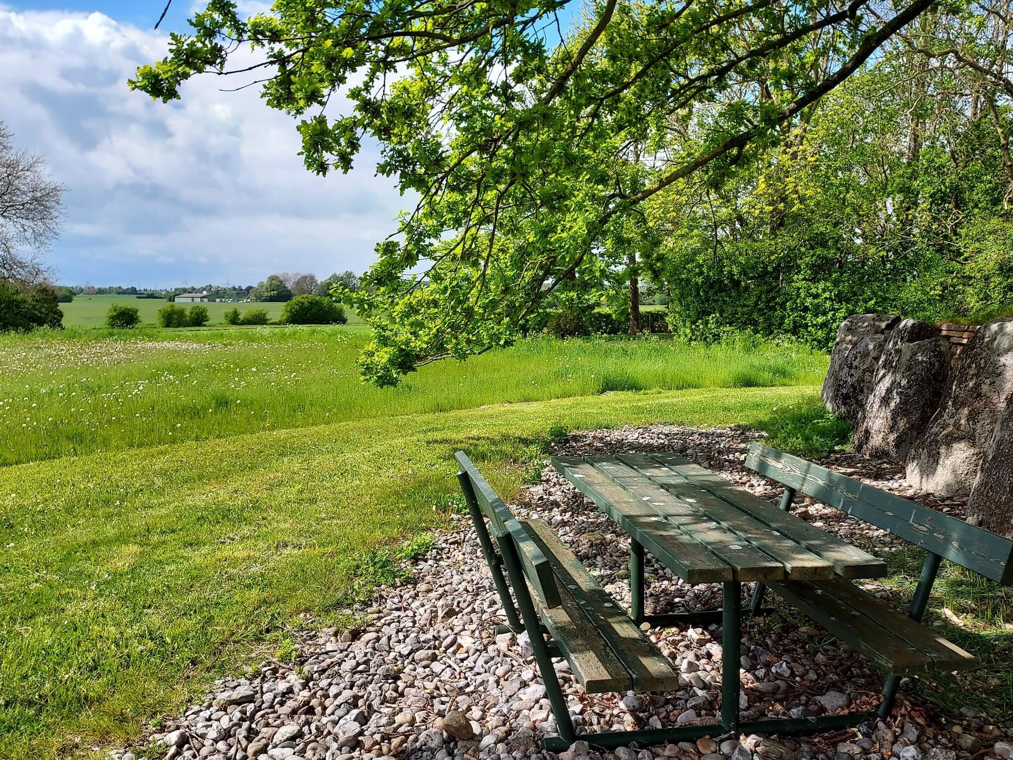 Sommerhuset ligger på en 900 m2 stor grund, så der er rig mulighed for leg og leg samt solbadning. Den overdækkede terrasse har havemøbler og liggestole samt en kulgrill, så I kan hygge jer.