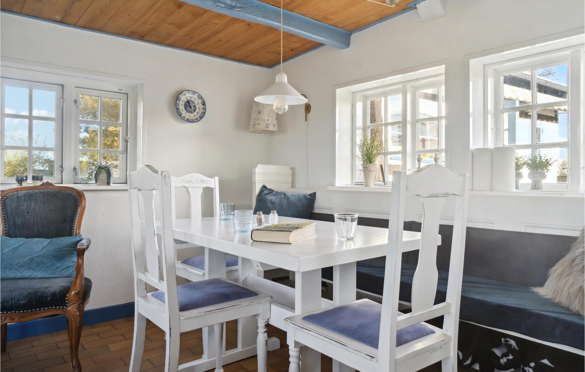 Det indbydende stråtækte feriehus er fuld af karakter og byder jer velkommen med hygge og varme. Her kan I slappe af med hele familien i smukke omgivelser og mærke skuldrene sænke sig. Mange af husets originale elementer er blevet bevaret under moderniseringen for at bevare husets ånd, og det er det ideelle valg for dem, der ønsker en særlig boligoplevelse. Nyd tiden sammen i stilfulde og hyggelige rammer og snak til sent ud på aftenen i de behagelige lænestole og i sofaen nær den varmende brændeovn. Også på terrassen kan I tilbringe dejlige stunder, og det er det ideelle sted til hyggelige grillaftener.