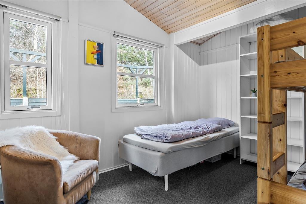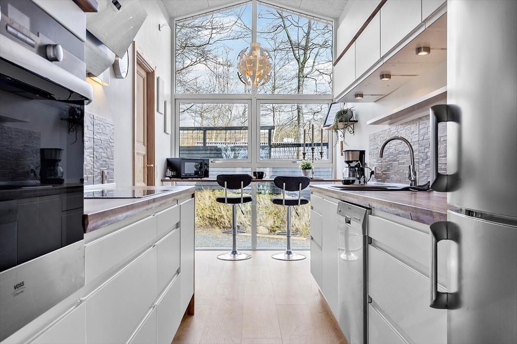 Når du træder indenfor i sommerhuset, mødes du af et lyst og indbydende rum, der indbyder til afslapning. Stuen er hyggelig med komfortable møbler, hvor du kan læne dig tilbage og nyde en god bog foran brændeovnen. Det åbne køkken er praktisk indrettet og giver mulighed for at tilberede måltider, mens du holder øje med, hvad der sker i stuen. De tre soveværelser, som tilbyder plads til op til 4 personer og et barn, er smagfuldt indrettede, og her kan du virkelig slappe af og få en god nats søvn efter en lang dag med oplevelser.