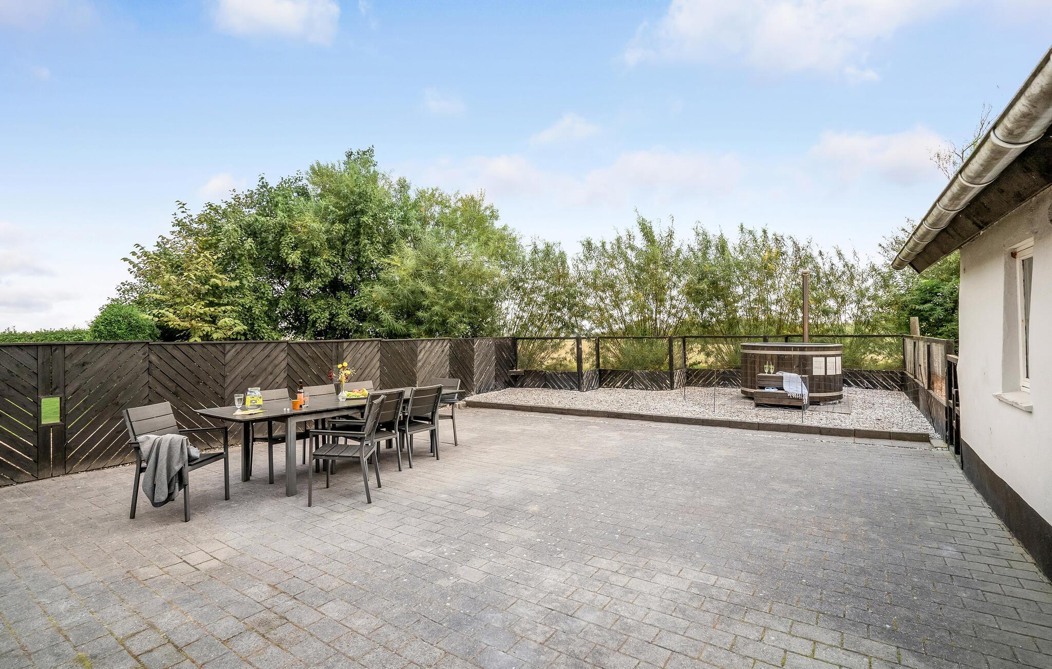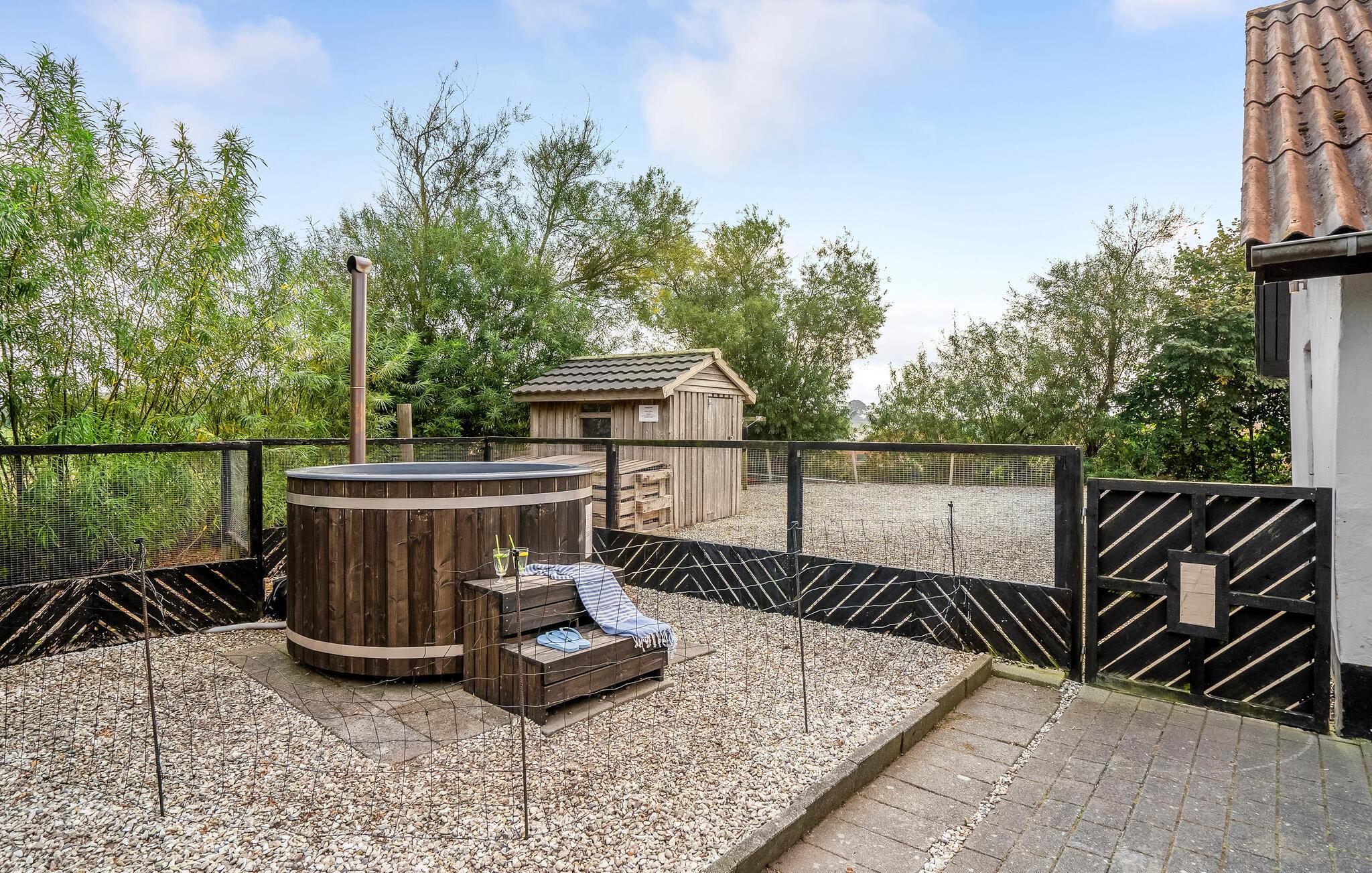 Udendørs kan i nyde den friske luft og naturen i et dejligt, afslappende vildmarksbad. Haven har desuden et indhegnet område, der er ideelt til familiens firbenede medlemmer. I haven finder I også et shelter, hvor man kan tilbringe de lune sommernætter, hvis man drømmer om at komme helt tæt på naturen. På terrassen kan I nyde morgenkaffen eller et godt glas vin på de lange sommeraftener.