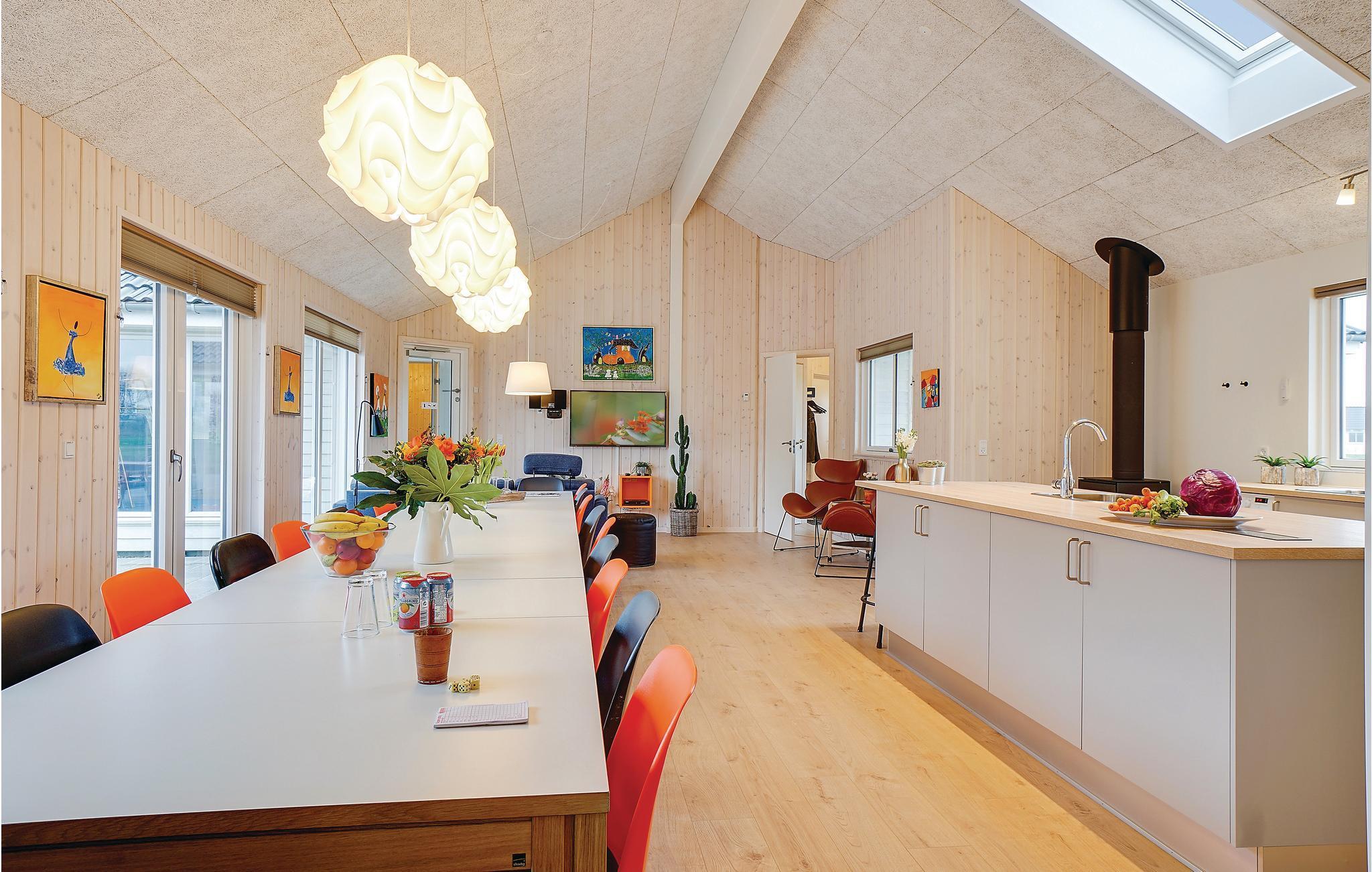 Søger I et fantastisk swimmingpoolhus til ikke mindre end 22 personer med mange aktivitetsmuligheder både inde og ude, nær Limfjordens badevenlige strande, så er dette helt sikkert huset for jer. Her er komfort og kvalitet i højsædet. Indgangsdørene har ramper, der er ingen dørtrin og to af soveværelserne med tilhørende badeværelse er ekstra store. Det store badeværelse har et handicaptoilet og åben bruseplads. Børnefamilier vil også finde det udstyr de har brug for, sådom pusleplads, babybadekar, vaskemaskine og tørretumbler.