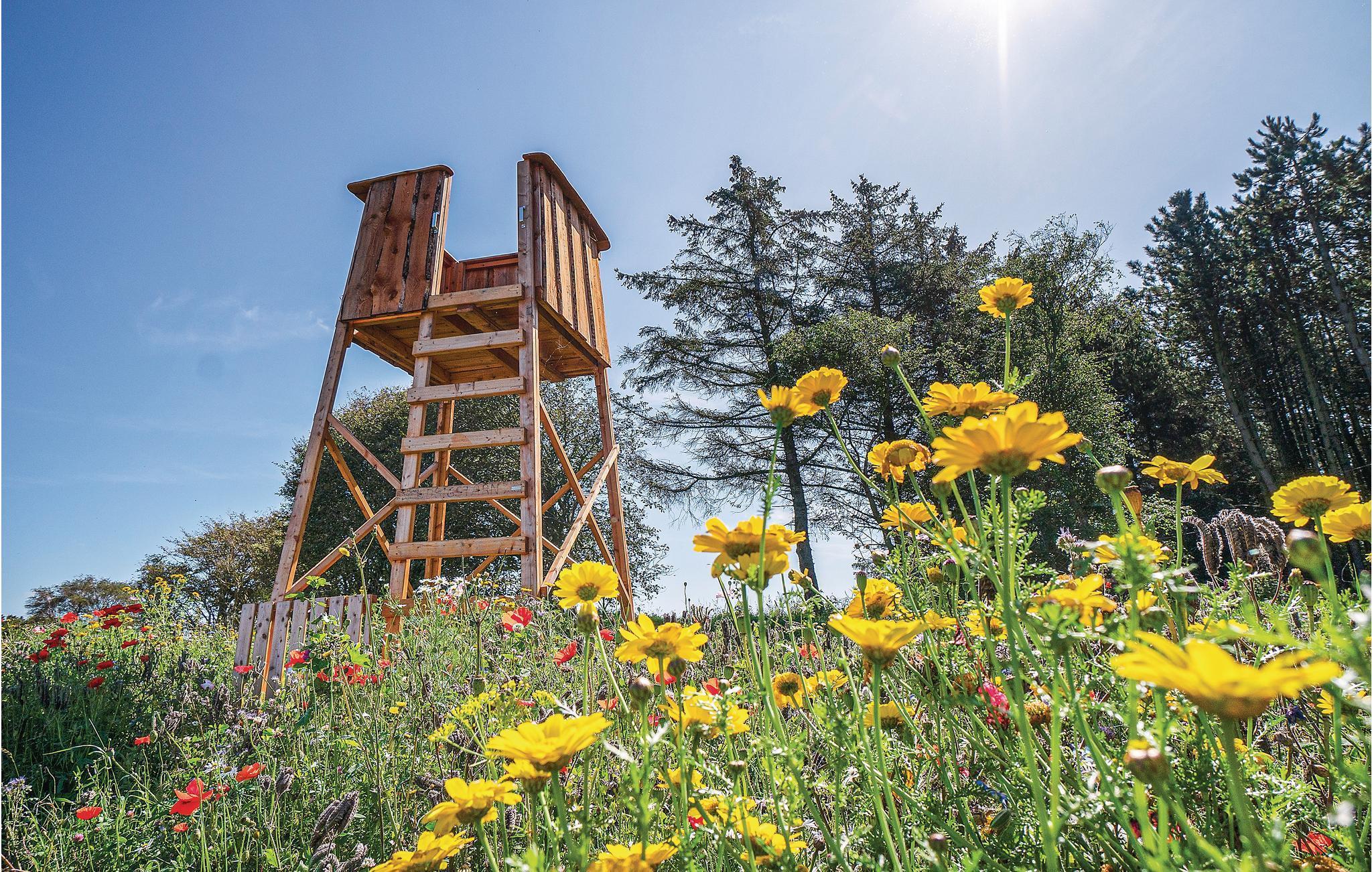 Tilbring mange skønne timer udendørs på den 3.000 m² store, ugenerte hjørnegrund, hvor I er velkomne til at plukke en buket markblomster og frugt fra de mange frugttræer. Hyg jer og overnat i shelteren, bag snobrød ved bålstedet og benyt jer af fiskerensepladsen, hvis I har heldet med jer på fisketuren. Børnene kan boltre sig på legepladsen med legeborg, trampolin, gynger, rutsjebane, vippe, sandkasse og trehjulede cykler. I har også mulighed for at dyste i volleyball, fodbold, rundbold og kroket. Nyd en øl på eftermiddagsbænken og udsigten over det kuperede landskab. Glæd jer også til en afslappende tur i det brændefyrede vildmarksbad med efterfølgende bad i koldtvandskarret. Det er ren terapi for krop og sjæl, hvor I samtidig kan nyde en enestående stjernehimmel uden lokal lysforurening.