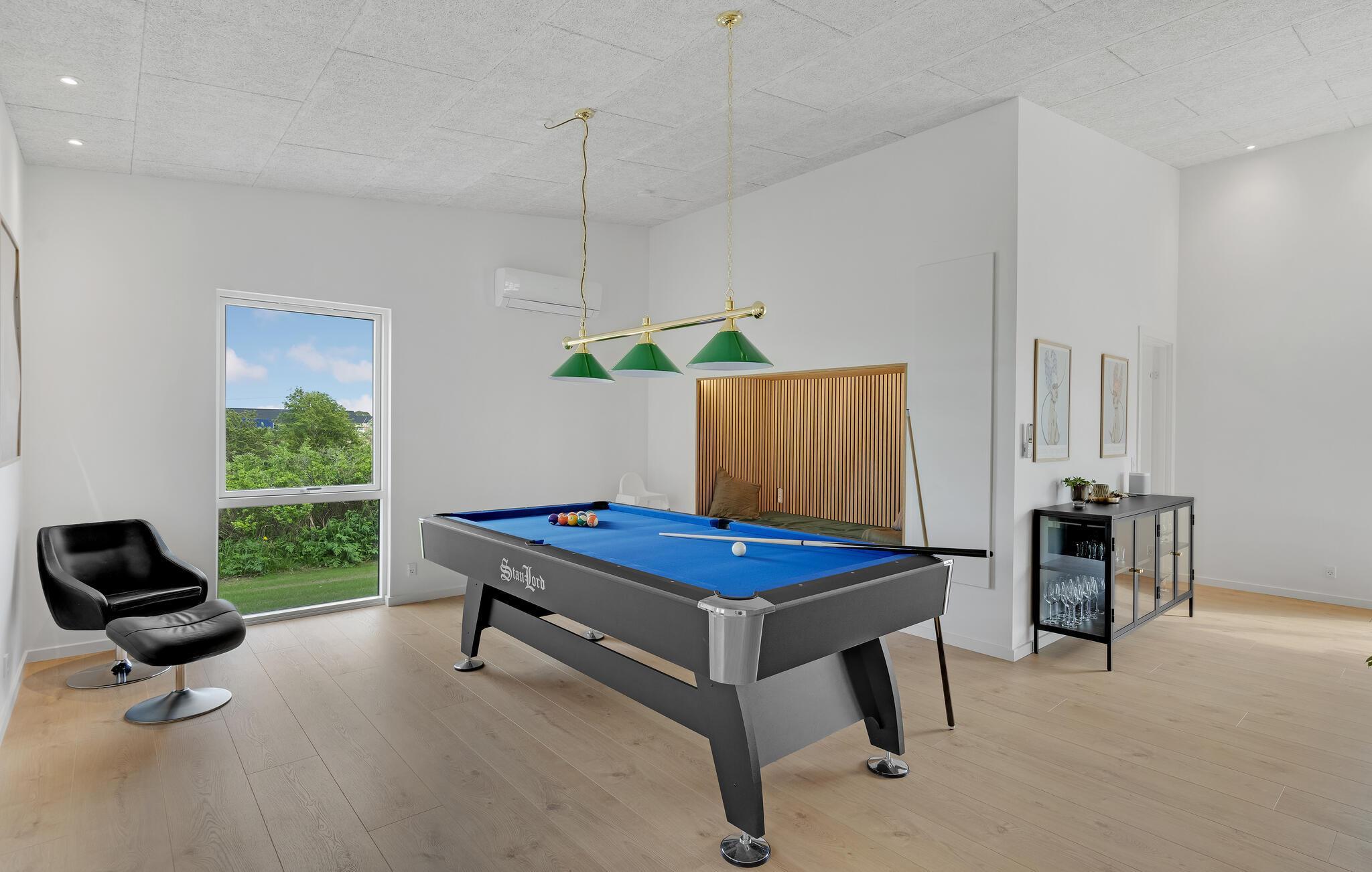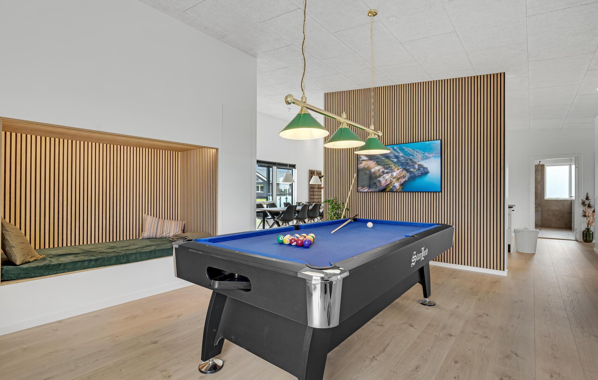 Glæd jer til jeres ferie i dette skønne og hyggelige feriehus i Hostrup Strand. Tag hele familien eller en vennefamilie med på ferie og tilbring skøn kvalitetstid sammen. Unge og gamle kan slappe af i boligen, lave mad sammen, holde spilleaftener eller slænge sig i sofaerne i stuen. Det åbne aktivitetsområde, hvor I kan spille billard og lytte til musik, sørger for mange timers sjov og leg. Hele huset er indrettet med møbler og materialer af høj kvalitet, hvilket også afspejles på den overdækkede terrasse. Nyd milde sommeraftener her med grillmad og slap derefter af i spabadet, mens børnene boltrer sig i haven.
