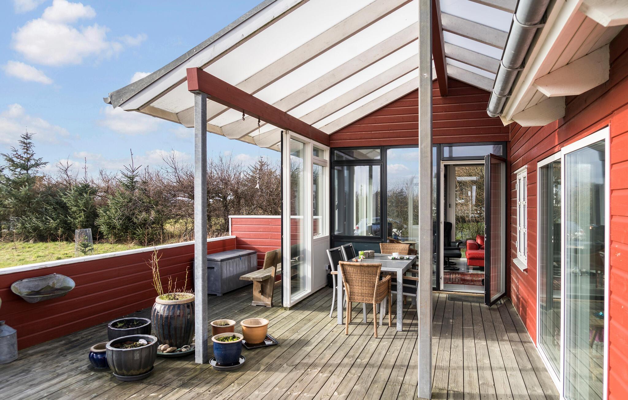 Noget af det bedste ved huset er de store terrasseområder, som giver jer et herligt sted at nyde den friske luft. Dæk op til dagens måltider på den overdækkede del af terrassen og mærk feriestemningen sænke sig. Om aftenen bidrager grillen til at runde sommeraftenerne af med manér.