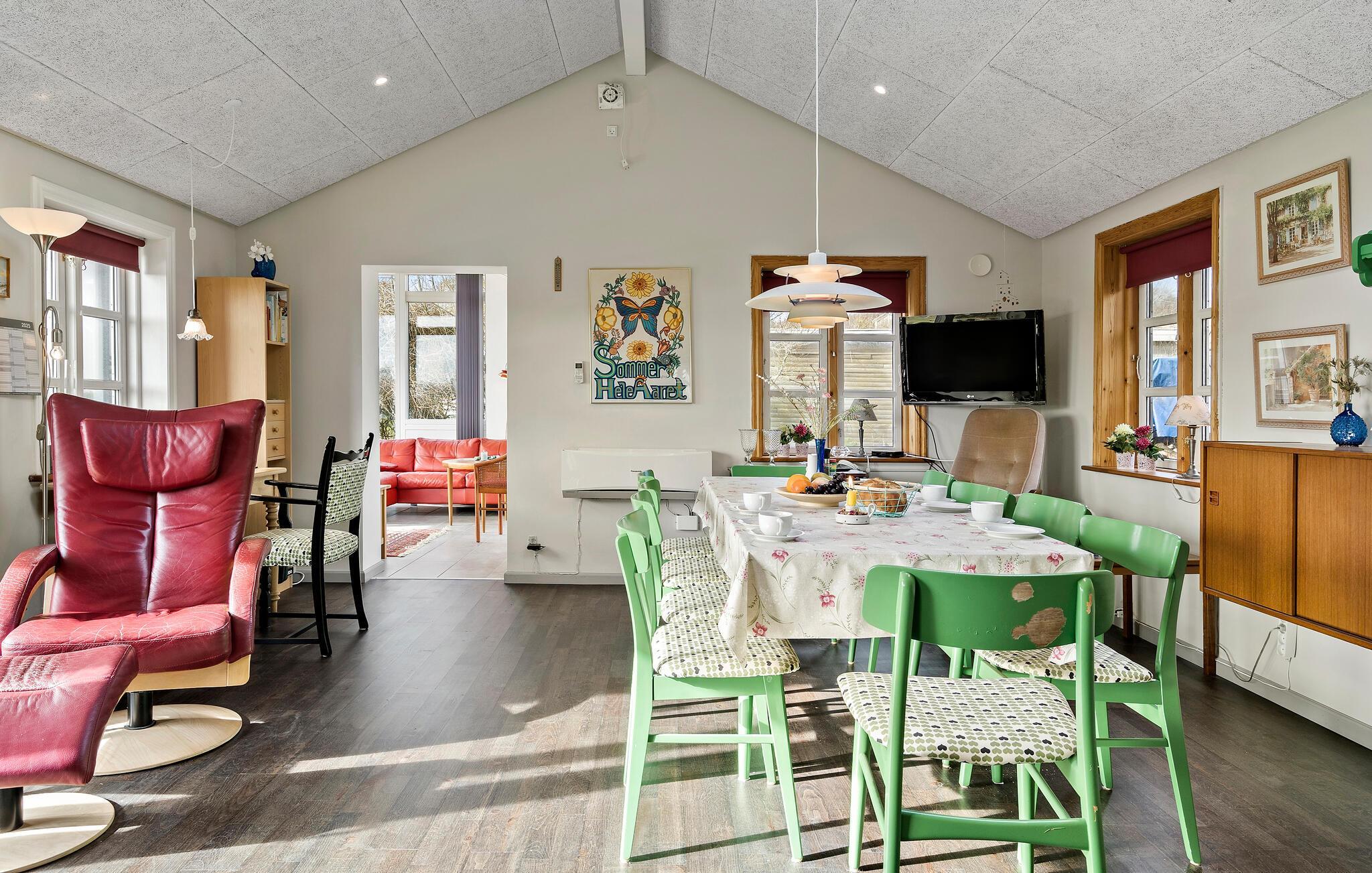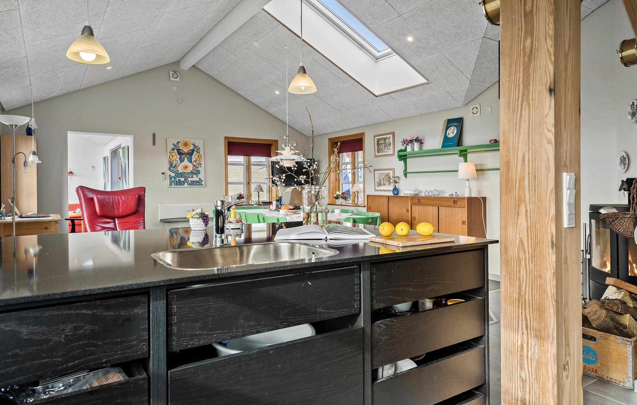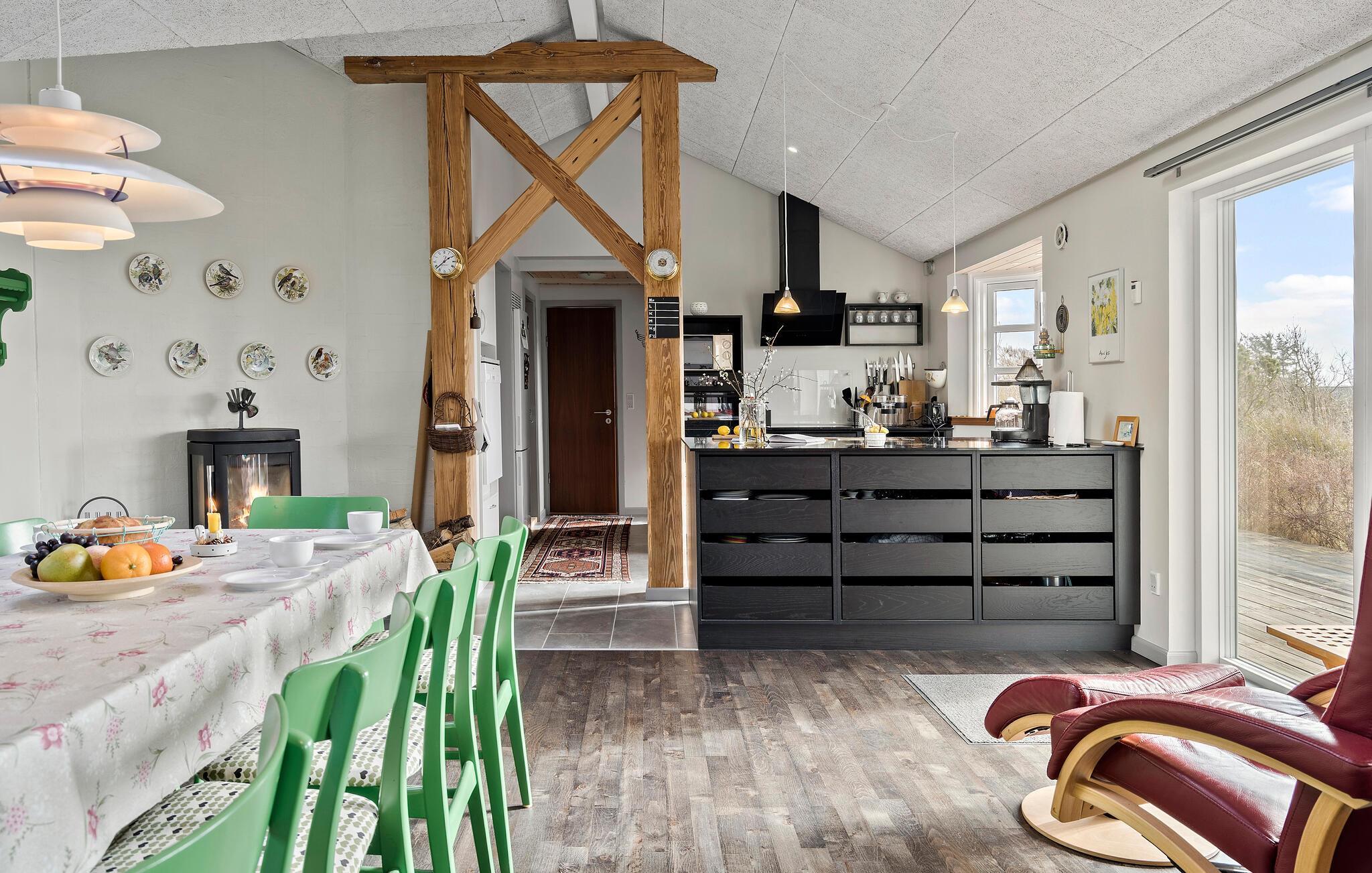 Velkommen til de idylliske rammer omkring dette feriehus, hvor I kan nyde en pause fra hverdagslivet midt i et malerisk landskab. Huset har en varm og indbydende atmosfære. Begynd jeres dage med en solid morgenmad, som I kan tilberede i det åbne, moderne køkken, og planlæg derefter jeres aktiviteter rundt om spisebordet. Opholdsstuen med store vinduesfronter lukker masser af dagslys ind og er en god oase, når I skal slappe af. Læn jer tilbage og nyd freden og roen.