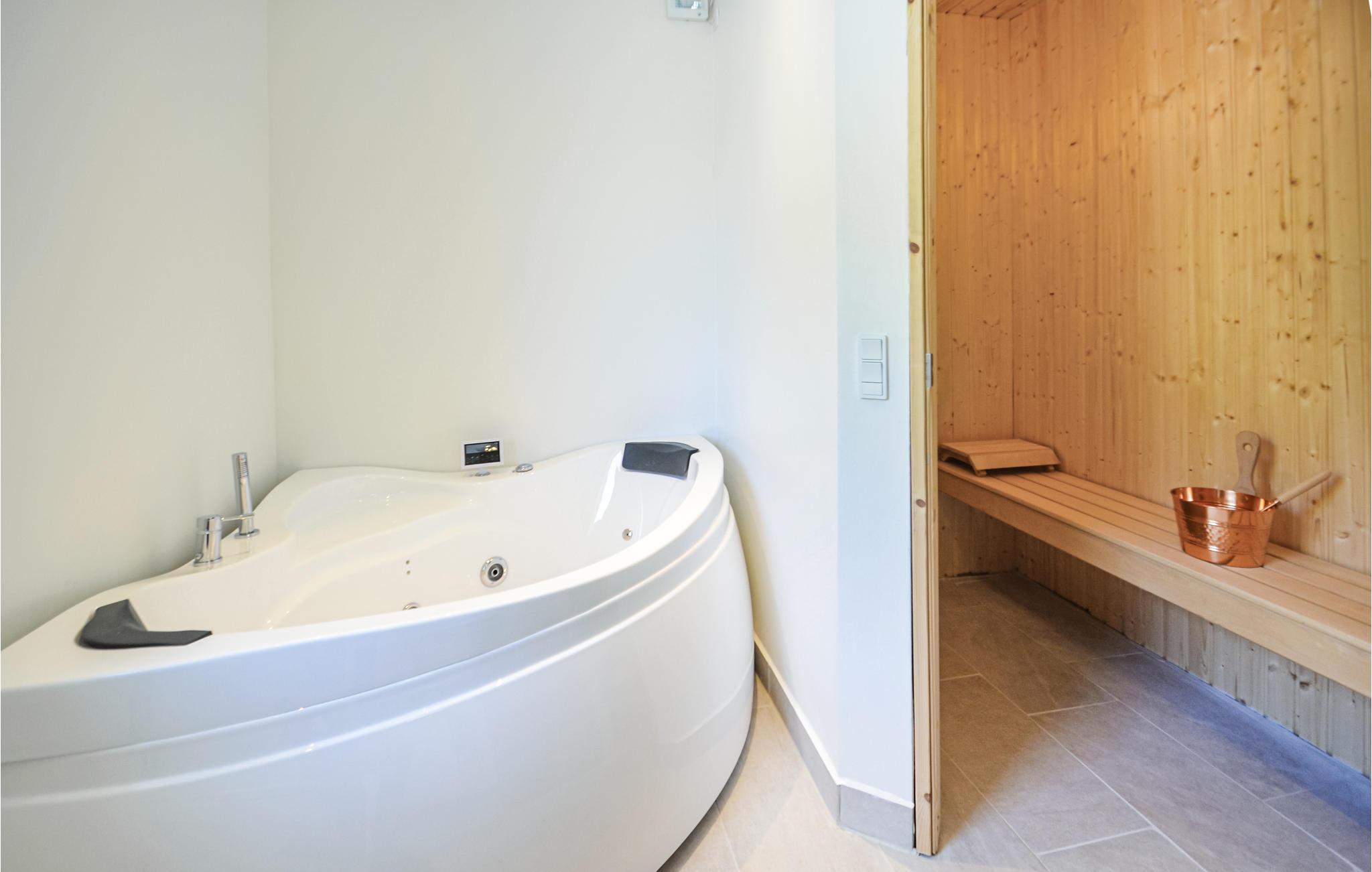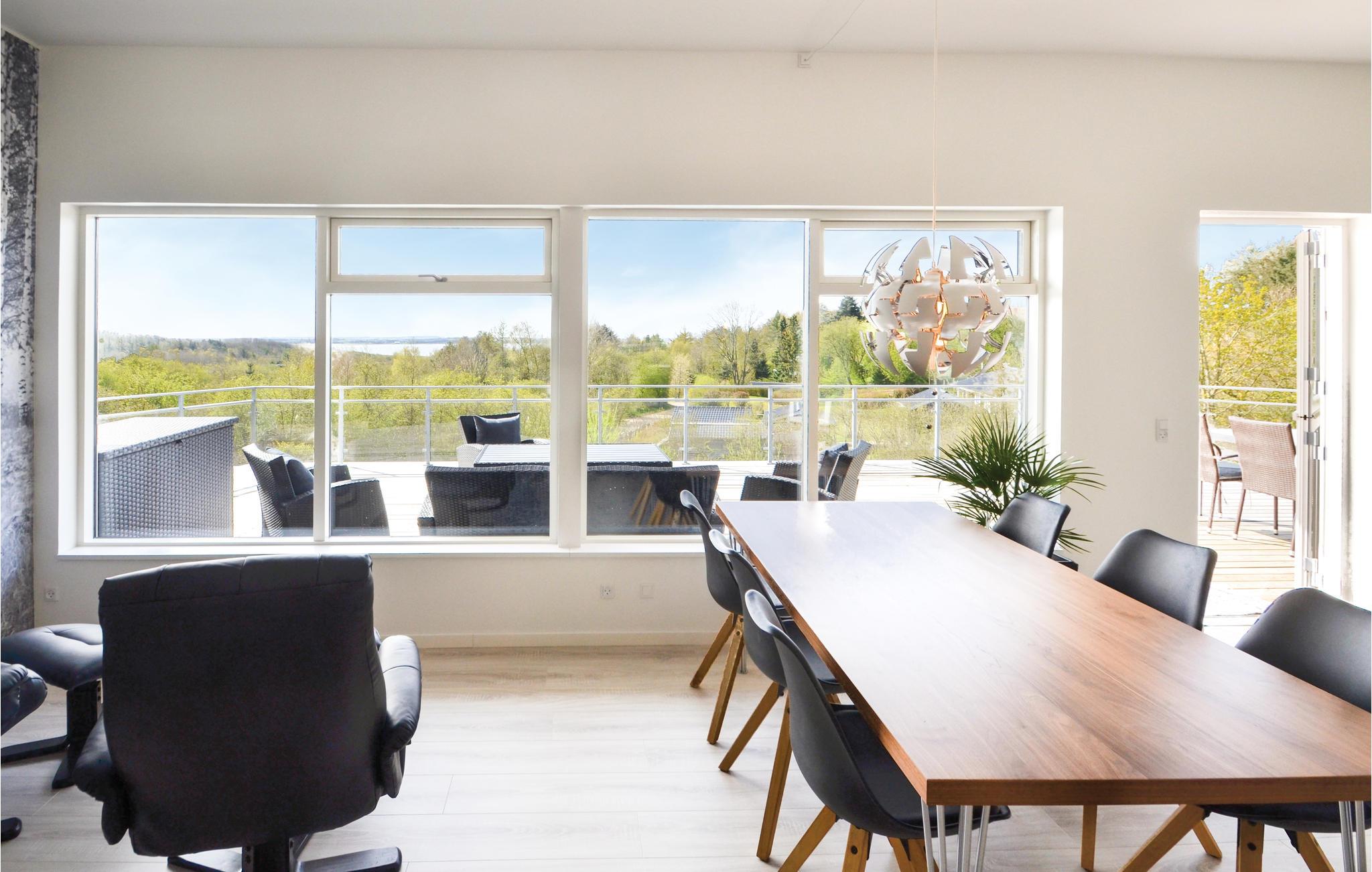 Moderne sommerhus med fjordudsigt, stor terrasse, sauna og spabad i naturskønne omgivelser ved Hostrup Strand.