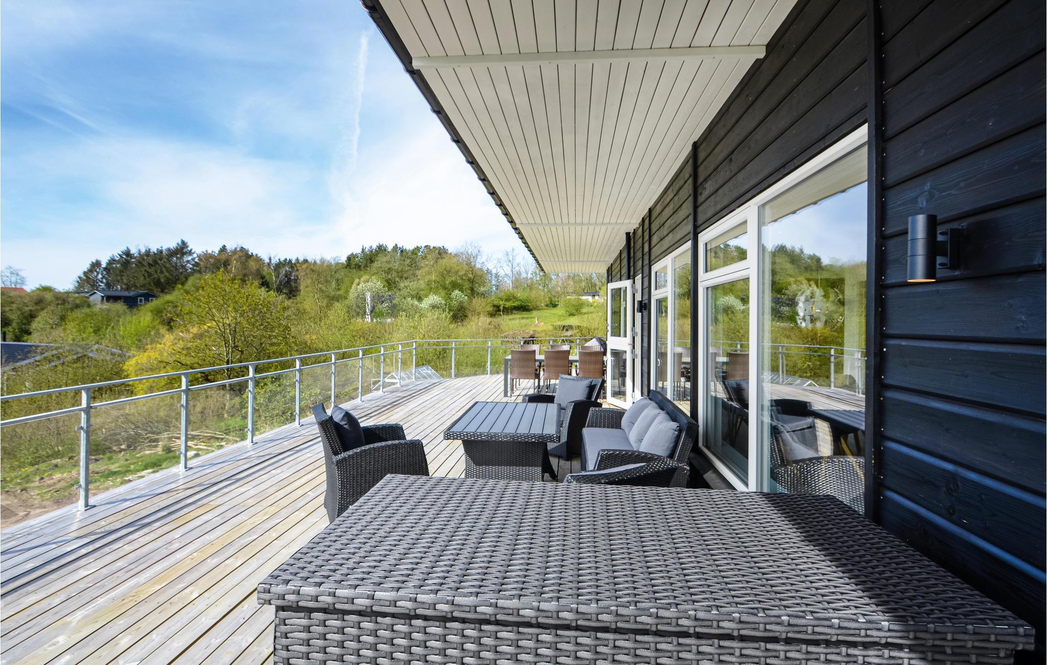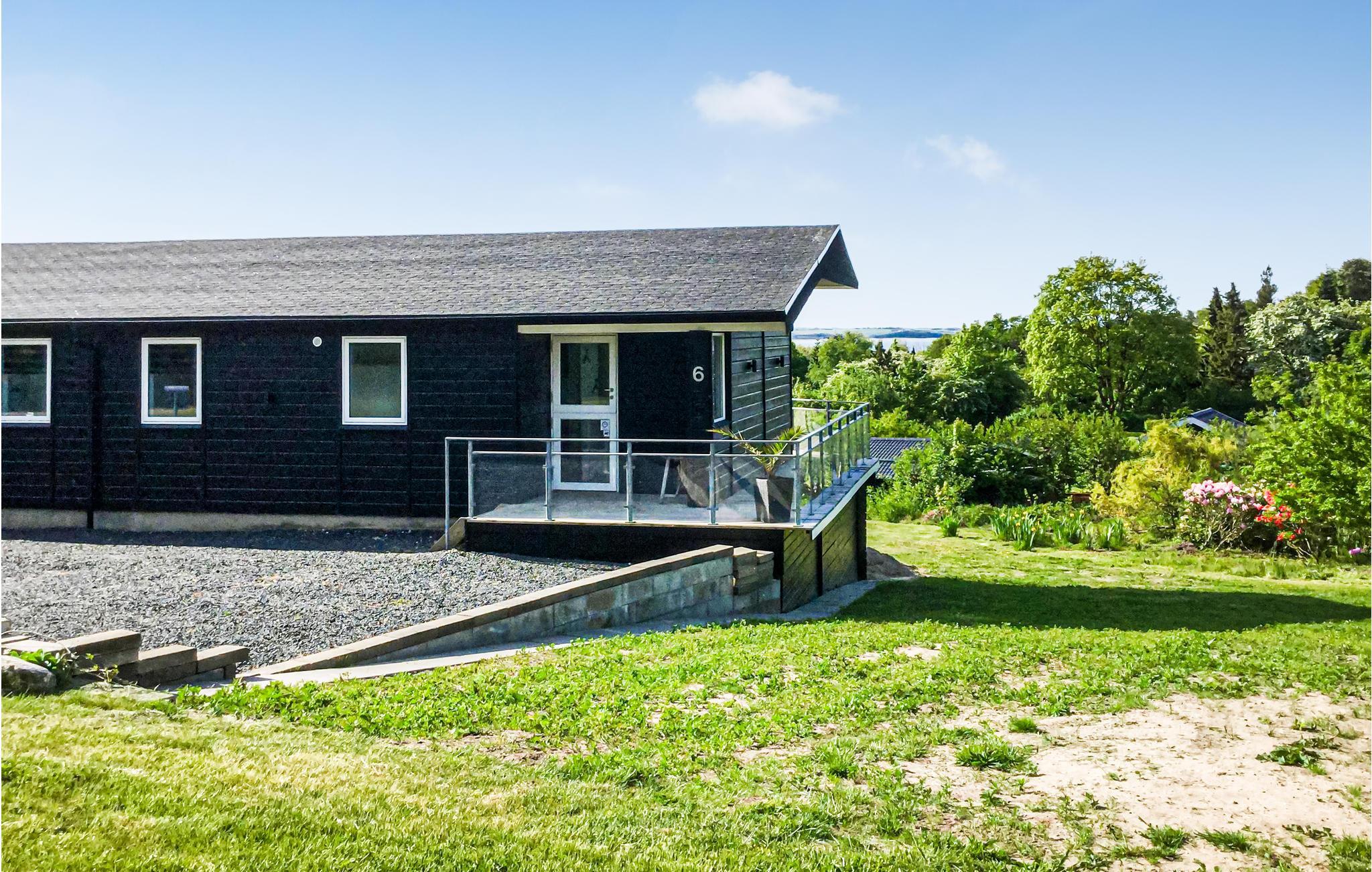 Moderne sommerhus med fjordudsigt og stor terrasse ved Hostrup Strand.