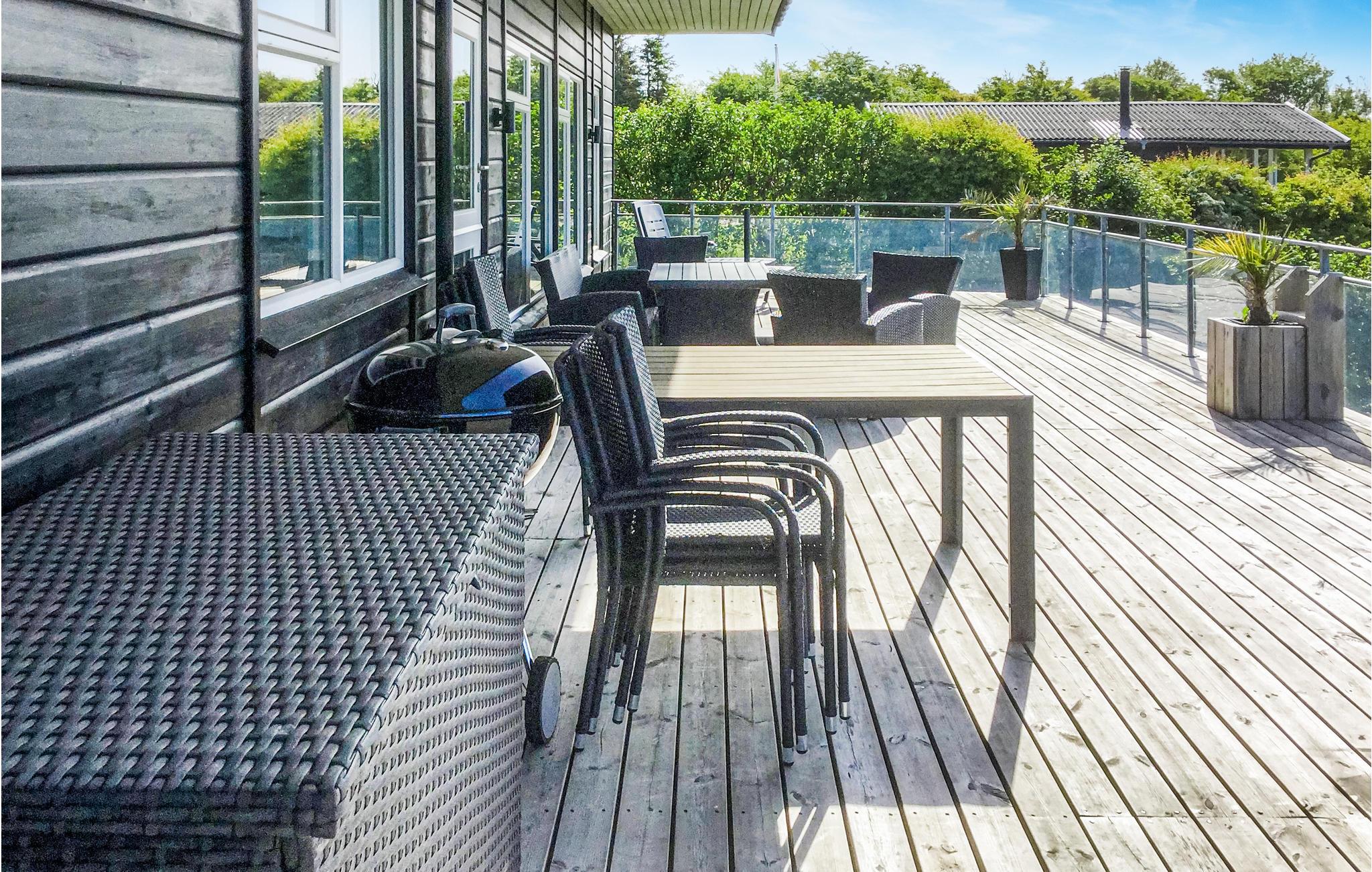 Moderne sommerhus bygget på højt beliggende grund, med en storslået udsigt udover både fjord og åbne vidder. Nyd ferielivet på den store velindrettede terrasse med bekvemme havemøbler, som skaber den perfekte ramme for afslapning og gode ferieoplevelser. Sommerhusområdet Hostrup ligger på Sallings sydkyst i Limfjorden, ud mod Venø Bugt og Kås Bredning, og nær Vinderup. Hostrup er omgivet af rolig og uspoleret natur. Der kan købes dagligvarer i Lihme og Lem, begge fire km fra Hostrup, eller i Skive, som ligger 21 km mod øst. Der er restaurant i Gyldendal Havn, to km mod nord. Her kan I slappe af, være aktive i naturen og holde ferie i fredelige og naturskønne omgivelser, tæt ved fjord, fugleområder, herregårde, en borg og andre interessante kulturelle seværdigheder.