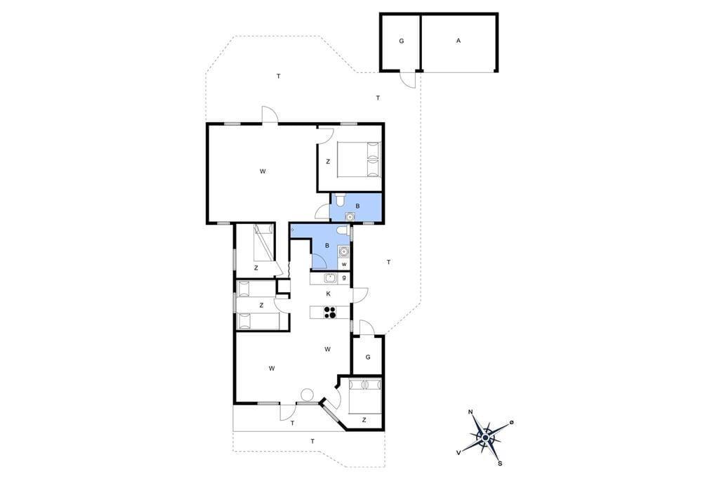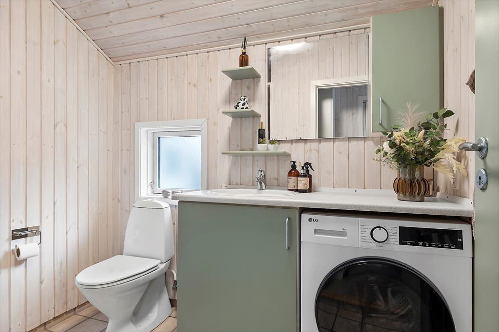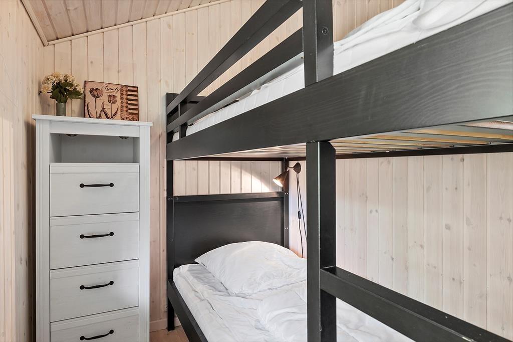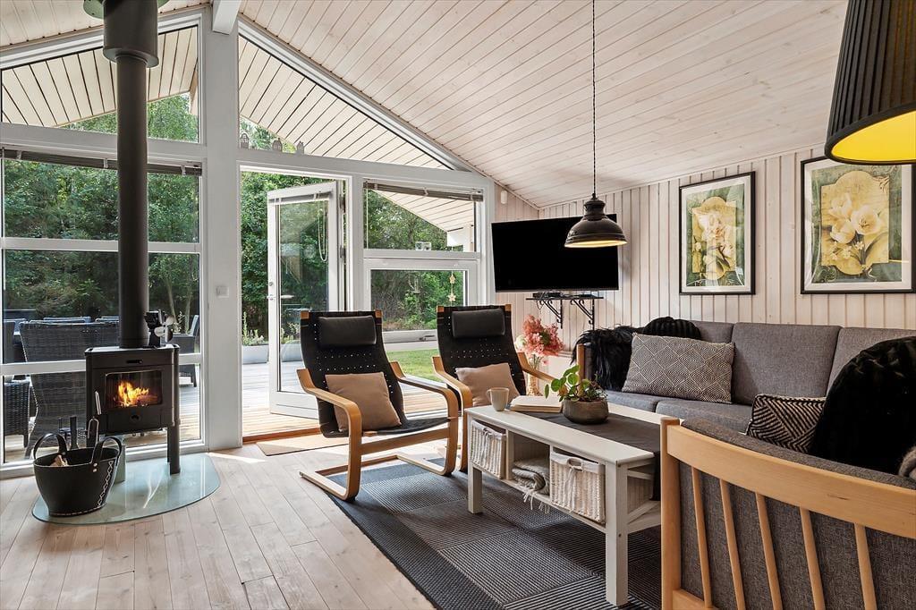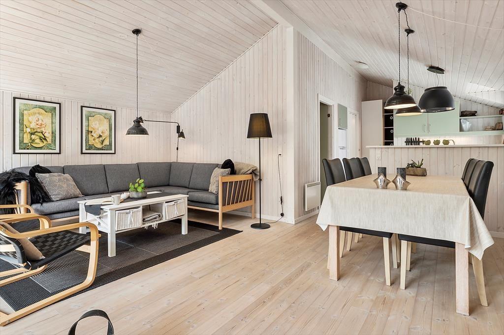 Du træder ind i den nye afdeling af huset, som består af et stort, flot indrettet aktivitetsrum med poolbord, bordfodbold og bordtennisbord samt et cafebord med høje barstole. Herfra er der desuden adgang til et stort soveværelse med dobbeltseng, samt til husets gæstetoilet. Der er adgang til resten af huset via en gang, som ender i husets køkken, som er åbent mod husets lyse spisestue og stue. Via gangen kommer du også forbi det store badeværelse. Huset er flot og moderne indrettet og byder på absolut gode rammer for ferien!