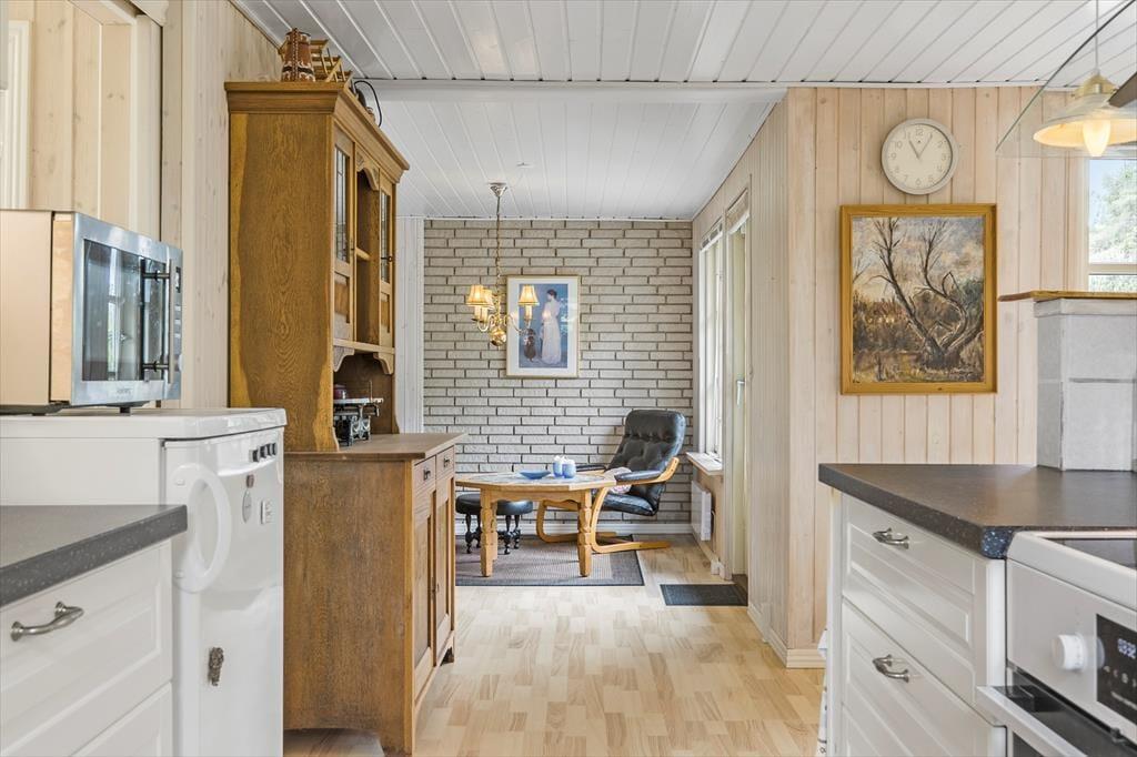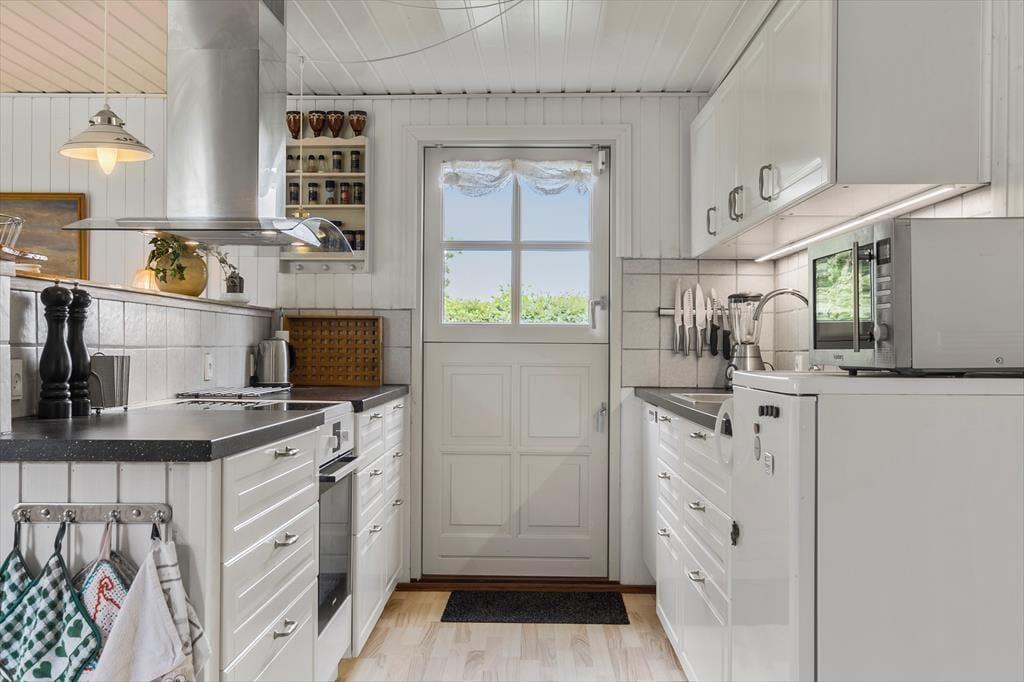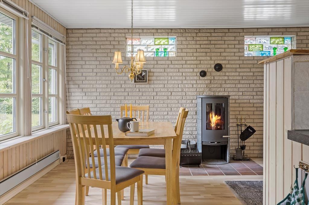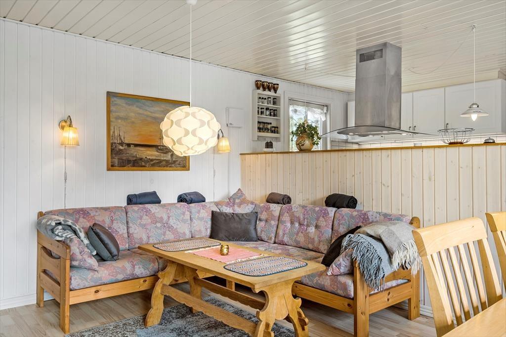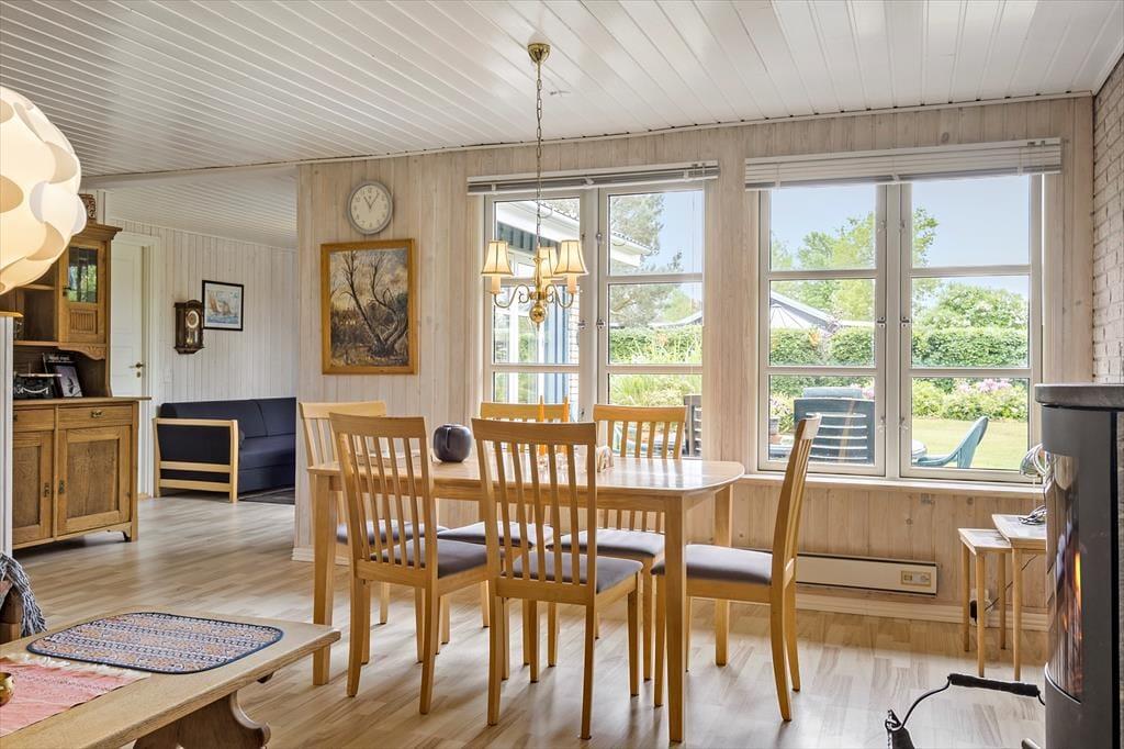 På adressen ligger et gedigent sommerhus, der senest er blevet renoveret i 2021. Inden døre er flere vægge beklædt med træ, og sammen med brændeovnen og andre hyggedetaljer giver det rummene den helt rette sommerhusfornemmelse. Trænger I til at slappe af, kan I finde nogle lækkerier frem og lave kaffe i det åbne køkken, inden I slænger jer i en af stuens sofaer med en god bog eller en film. Husets tv har Chromecast tilsluttet, og der er også god wi-fi-forbindelse, hvis I vil følge med i nyhederne eller sende feriefotos til vennerne. I sommerhuset er der et brusebadeværelse og to soveværelser, hvoraf det ene er med dobbeltseng og det andet med dobbeltseng med en enkelt køje over. Der er også mulighed for at overnatte i det dejligt rummelige anneks, der er udstyret med dobbeltseng og tv.