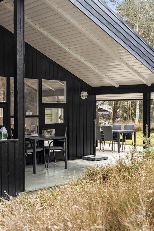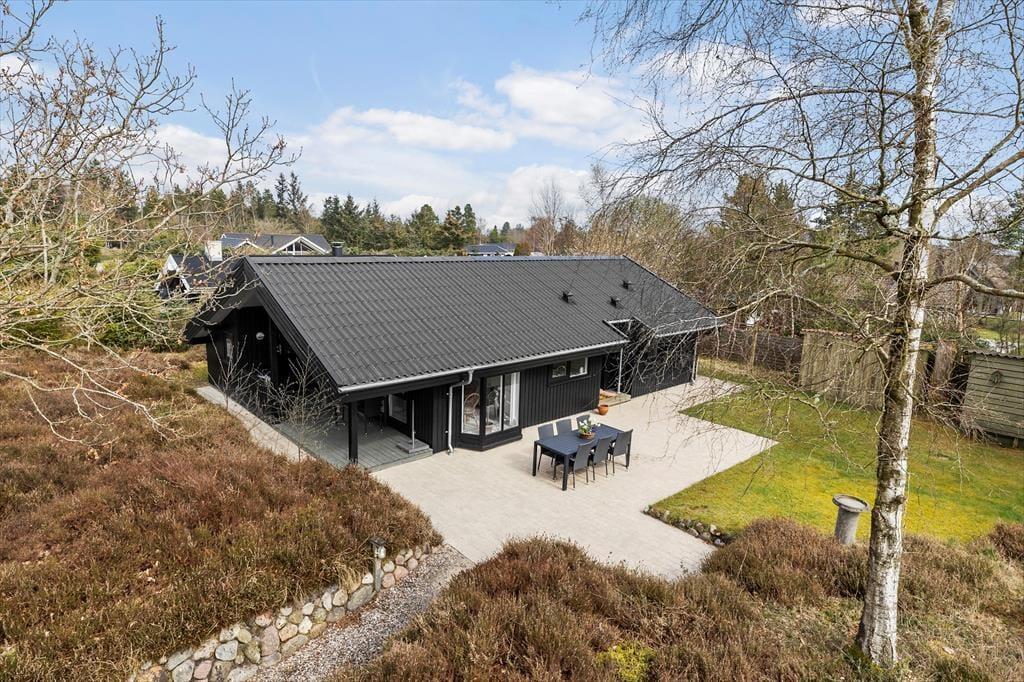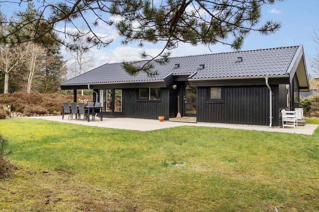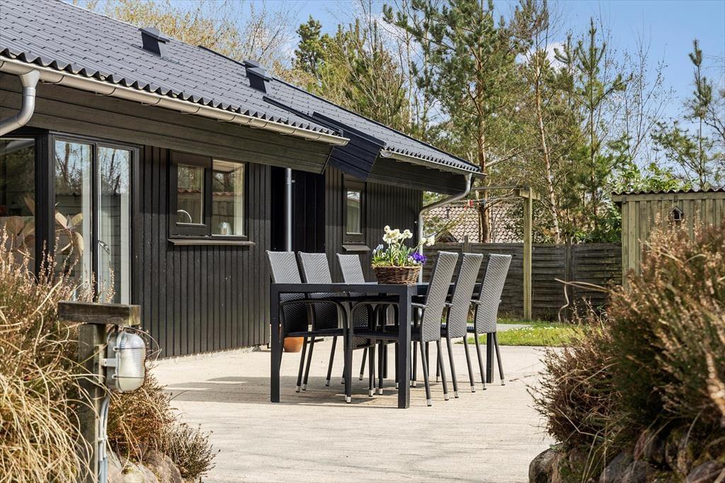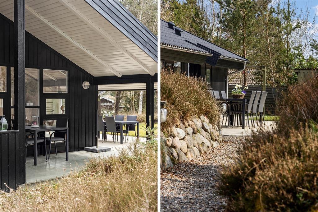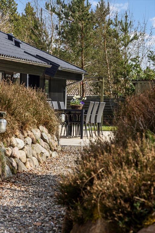 Det er ikke kun indenfor, at sommerhuset indbyder til afslapning. Udenfor venter et terrassemiljø, hvor du har flere muligheder for at slå dig ned – både i sol og i skygge. Den overdækkede terrasse er helt ideel, når duggen falder tidligt, eller hvis du vil finde læ på en blæsende dag. Her kan du tage morgenkaffen med ud, mens dagen langsomt vågner, eller dække op til aftensmad under åben himmel. Terrassen føles som en naturlig forlængelse af huset, og med komfortable havemøbler og god plads til både børn og voksne, er det oplagt at bruge mange af feriens timer her. Børnene kan lege på græsset eller blandt træerne, mens de voksne nyder solen og det fredelige udeliv. Og om aftenen kan I tænde op i grillen, lægge fødderne op og bare nyde hinandens selskab i den lune aftenluft.