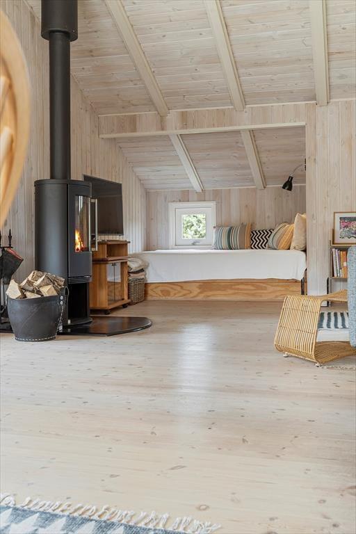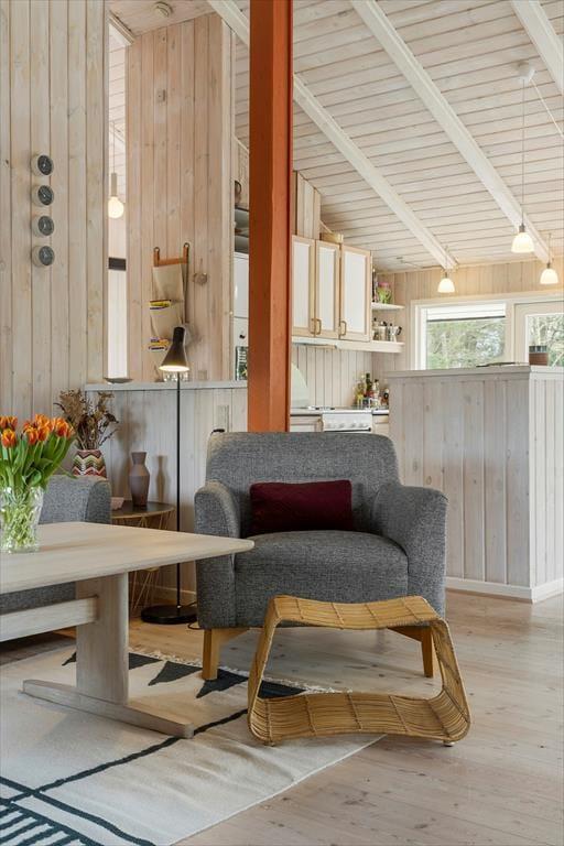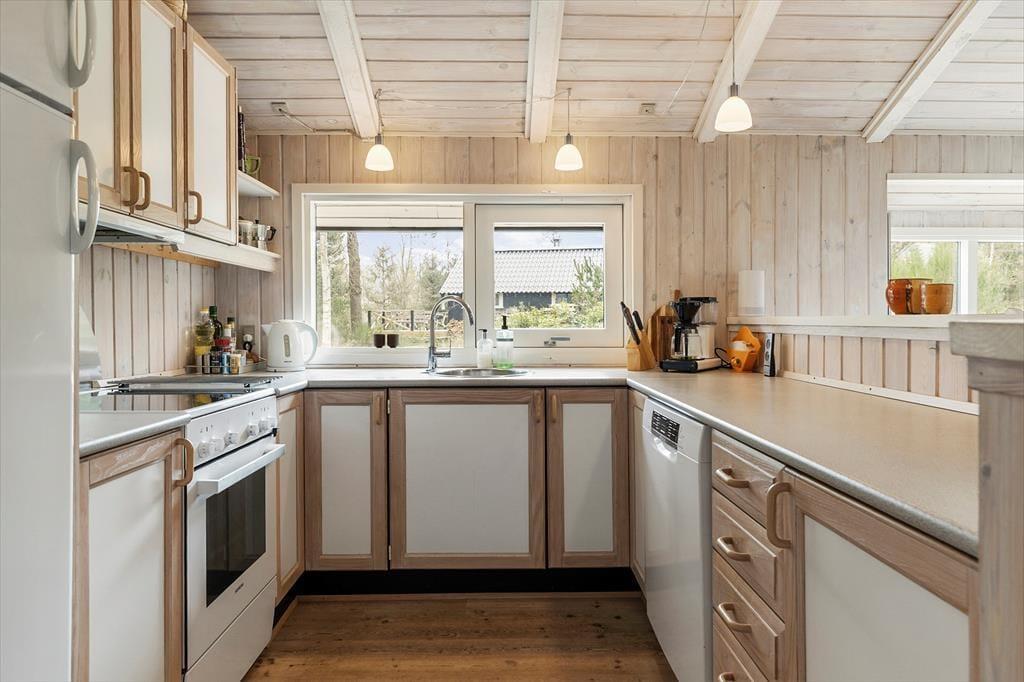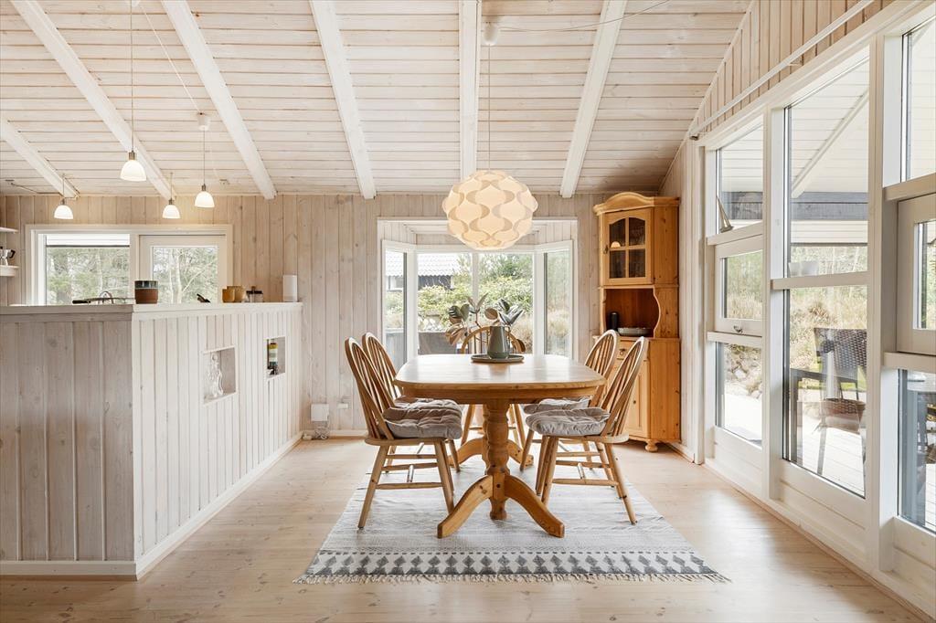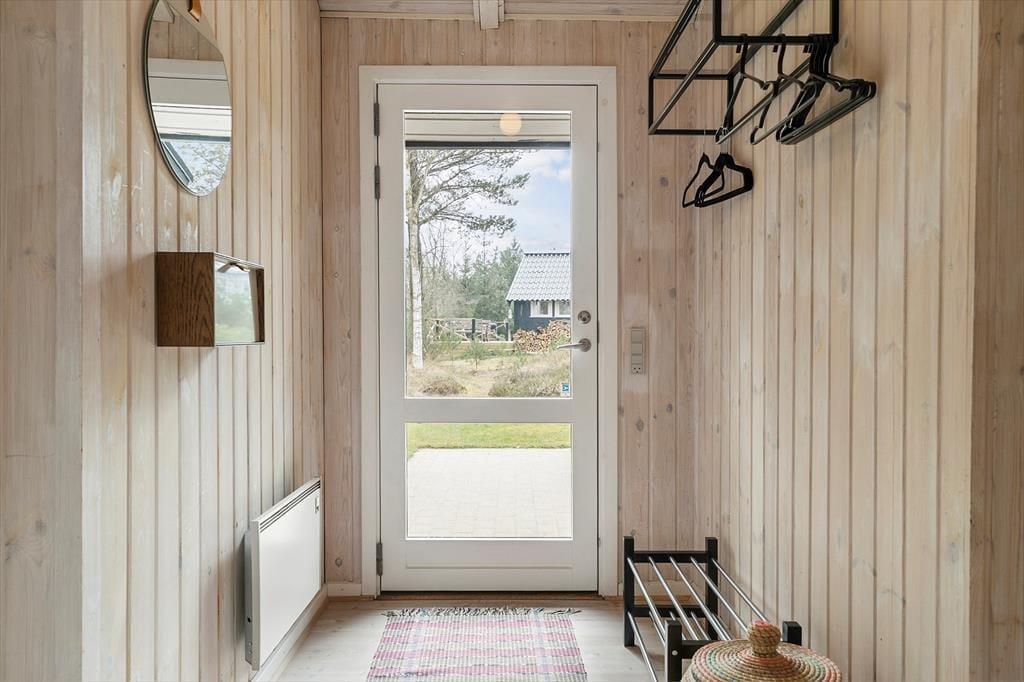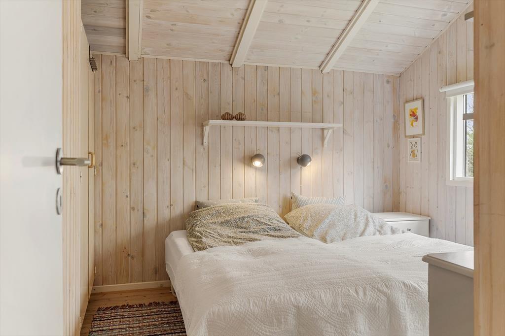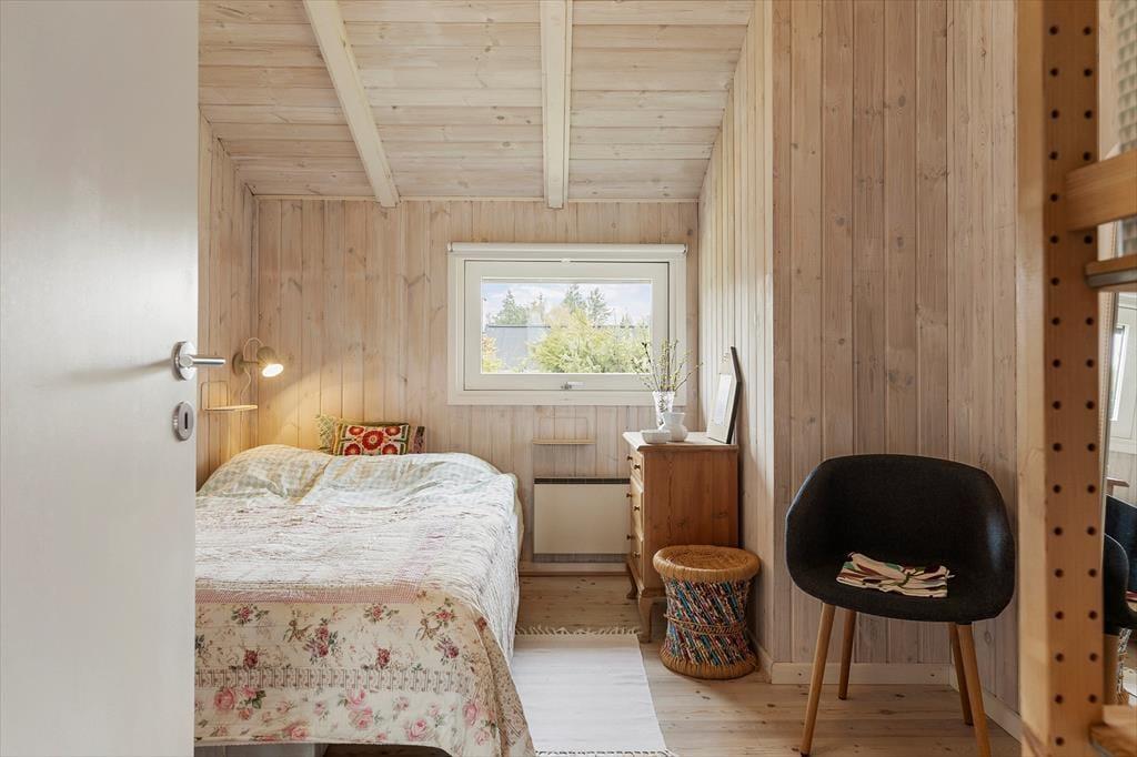 Det første, man bemærker, når man træder ind i sommerhuset, er den lyse og venlige atmosfære. Træbeklædningen på væggene skaber en varm og hyggelig stemning, og med store vinduespartier strømmer dagslyset ind i rummene. Her får du en skøn base, hvor det er nemt at koble af fra hverdagen og finde roen med dem, du holder af. Midt i huset samles opholdsstue og køkken til et hjerterum, hvor der er plads til samtaler over middagsmaden, afslappende stunder i sofaen og hyggelige brætspilsaftener. På de køligere dage kan I forkæle jer selv med lidt ekstra selvforkælelse – saunaen står klar og giver jer den ultimative følelse af ferie og velvære. Og når børnene er faldet i søvn, kan I nyde stilheden med en kop te eller et glas vin og høre vinden suse blidt i træerne udenfor.