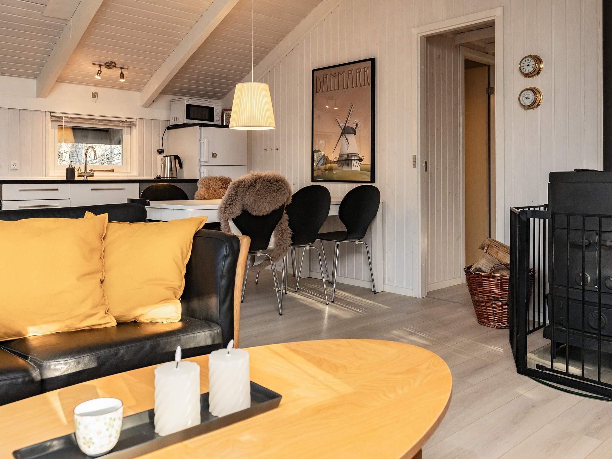 I hjertet af huset er en lys og indbydende stue, som ligger i åben forbindelse med det rummelige og veludstyrede køkken. Dette skaber en ideel ramme for fælles måltider og hyggelige sammenkomster. I stuen er der også en brændeovn og en klimavenlig luft-til-luft varmepumpe, der sikrer komfort i de køligere årstider. Selvom der ikke er nogen traditionel tv-kanalmodtagelse, kan gæster streame deres egne udbydere via Chromecast, hvilket tilføjer moderne bekvemmelighed til den hyggelige ferieatmosfære.