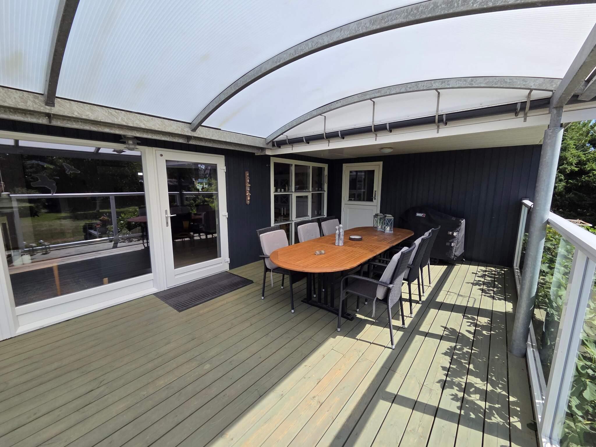 Udendørs venter en stor overdækket terrasse med spiseplads og el-grill, to åbne terrasser med havemøbler samt en flot anlagt have med robotplæneklipper. Der er varmepumpe i huset og gulvvarme i annekset – perfekt til ferie året rundt.