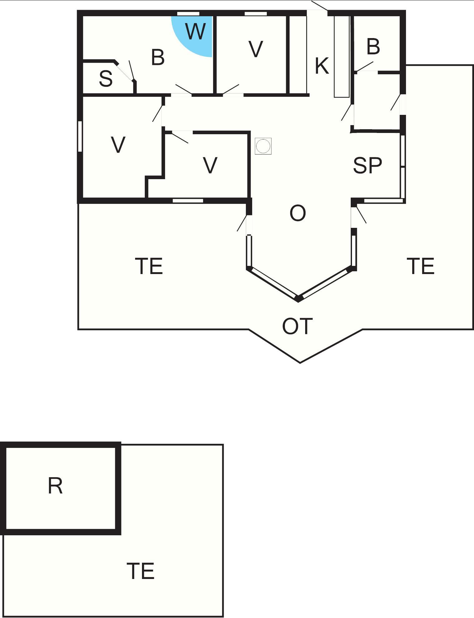 1 Opholdsstue: Brændeovn, stereoanlæg med cd, dvd-afspiller, tv, høj stol