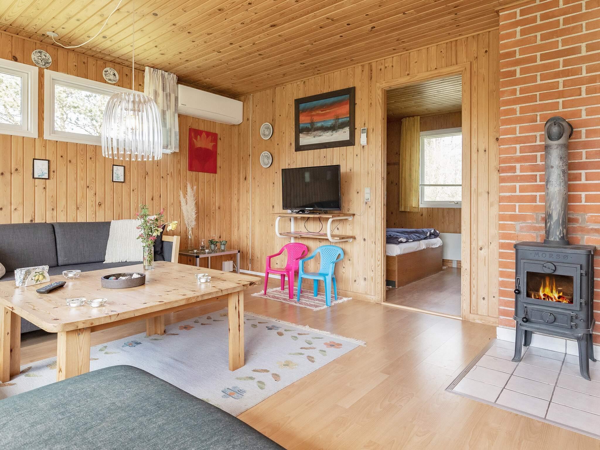 Sommerhus beliggende på en lukket grund med god plads til udendørs aktiviteter i rolige omgivelser i gåafstand til børnevenlig sandstrand ved Hou. Sommerhuset er bl.a. udstyret med vaskemaskine, brændeovn og trådløst internet. Køkkenet er bl.a. udstyret med køleskab med frostboks. Gulvvarme på badeværelset. Tre soveværelser. Til de små er der barnestol. Den 1350 m² store naturgrund har 20 m² åben terrasse og der er desuden 10 m² overdækket terrasse. Der er gynge og sandkasse til familiens yngste.
