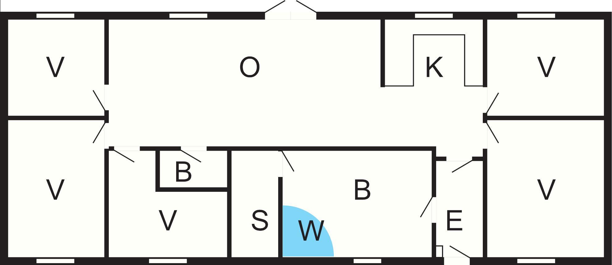 5 Soveværelser: (1DS)+(2S)+(2S)+(2S+2K)+(2S)