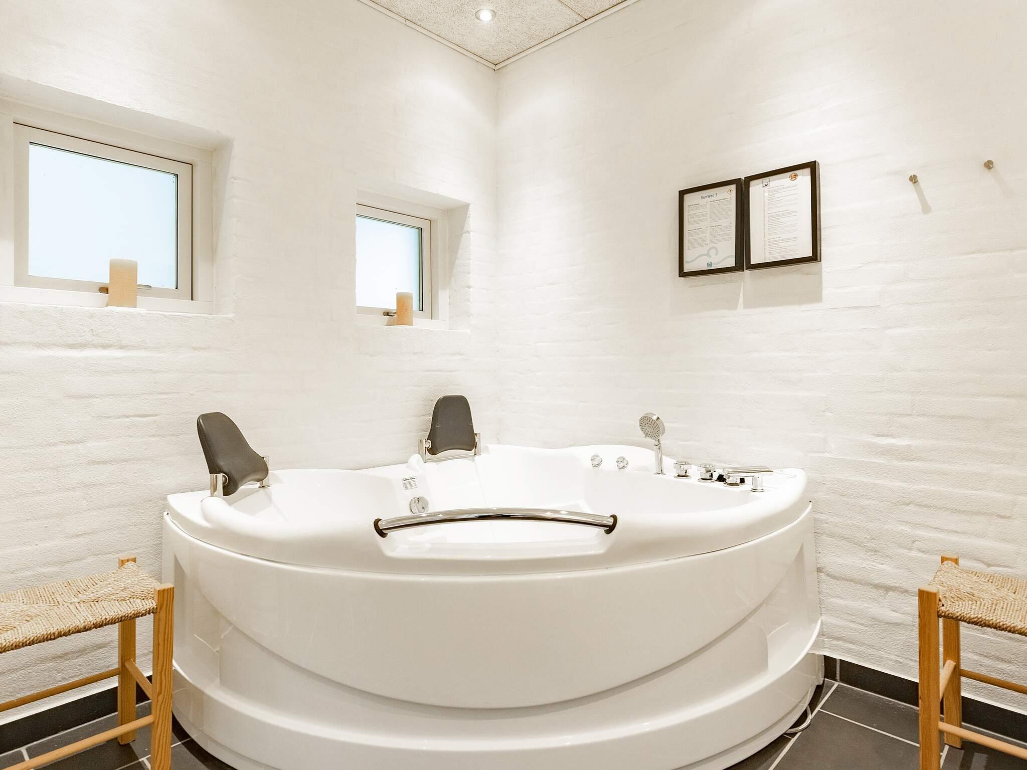 Huset har to badeværelser med bruseniche, hvoraf det ene har spabad og vaskesøjle med vaskemaskine og tørretumbler. Opvarmning sker via el og luft/vand varmepumpe, hvilket sikrer et behageligt indeklima året rundt. Derudover er der gasgrill og liggestole til de lune aftener.