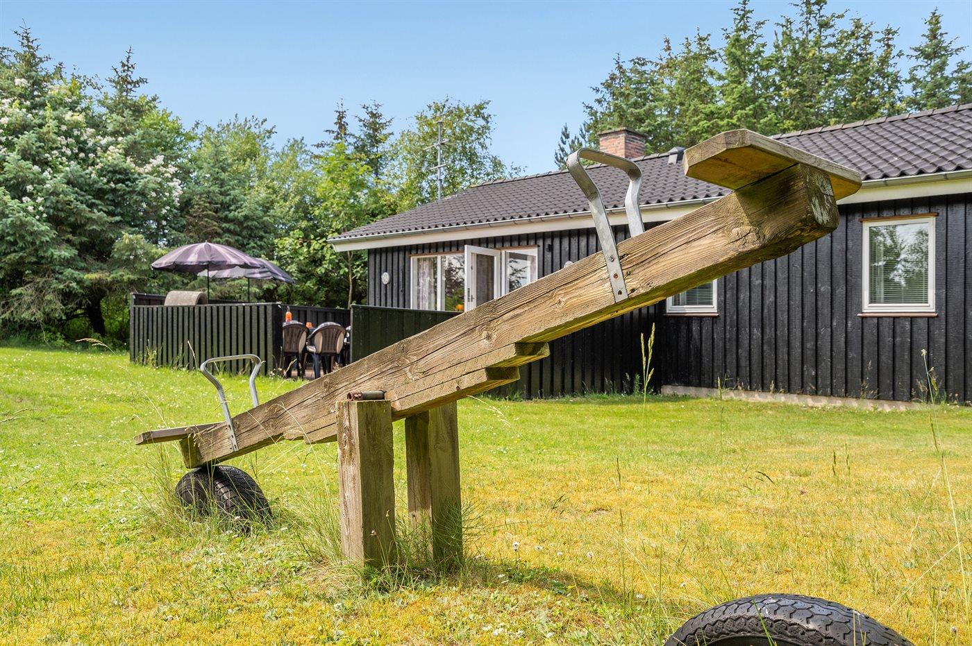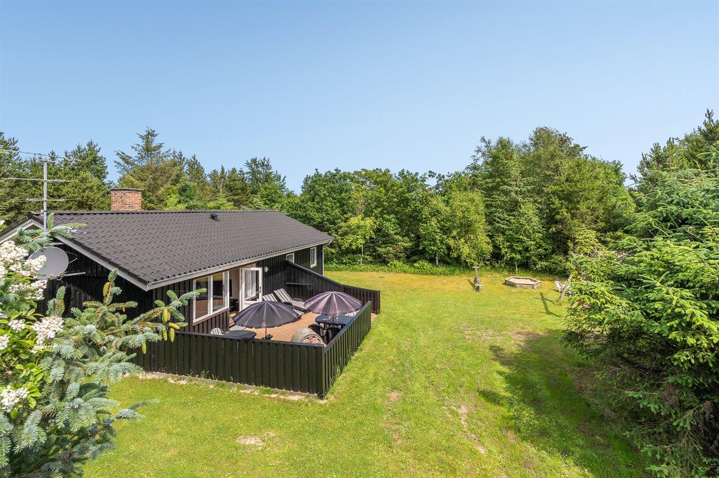 Ferieboligen er beliggende på en 1300 m² stor naturgrund. Der er 300 m til havet. Nærmeste forretning er beliggende i en afstand af 400 m. Der er en golfbane i en afstand af 5000 m. Til ferieboligen hører 30 m² terrasseareal. Gynge. Sandkasse. Legehus. Vippe. Parkering ved ferieboligen.