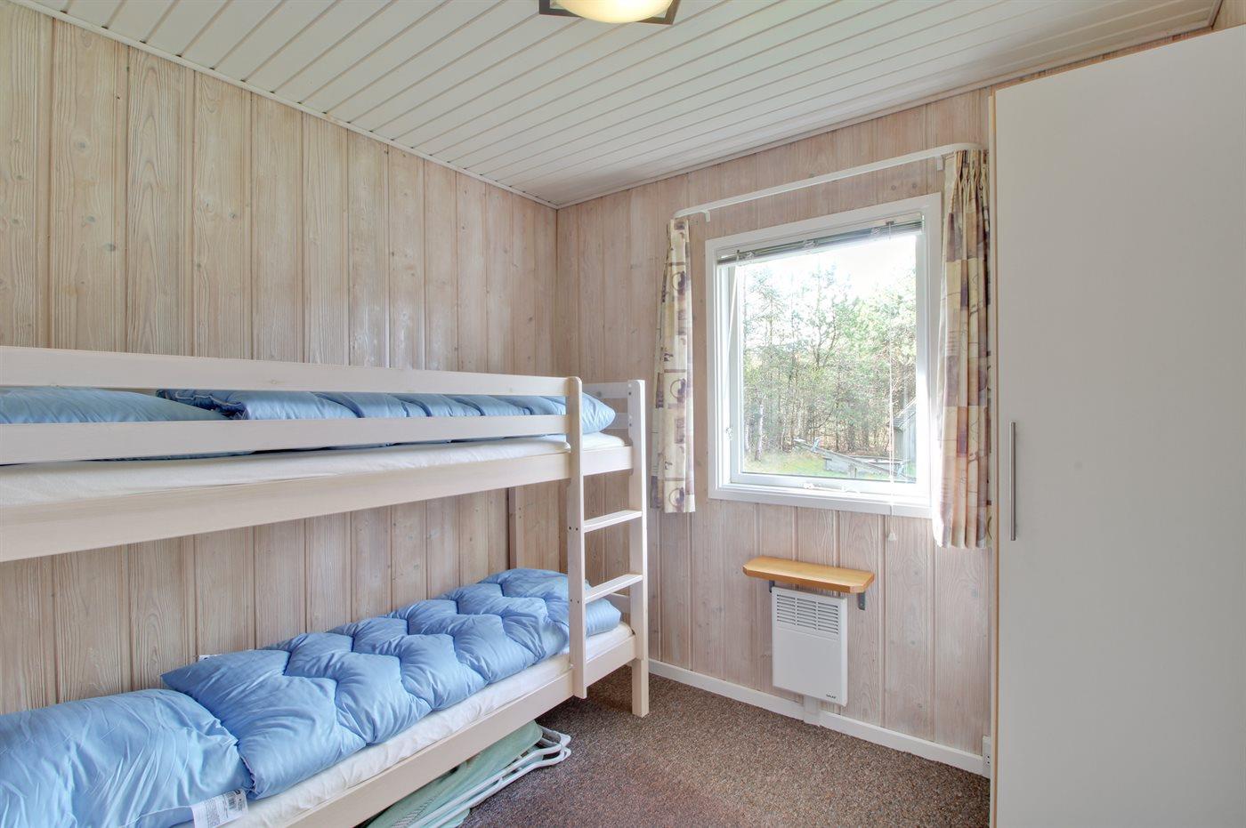 Der er i alt 5 soveværelser. Sovepladserne fordeler sig på: 2 sovepladser i dobbeltseng. 5 sovepladser i enkeltsenge. 2 sovepladser i køjeseng. Derudover er der 1 stk. barneseng.