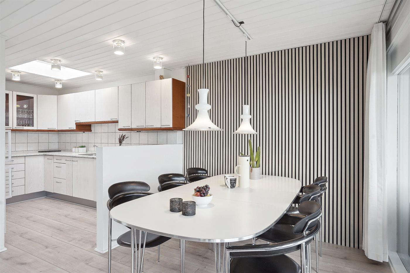 Køkkenet er udstyret med 1 køleskab. Der er 4 keramiske kogeplader, varmluftovn, mikrobølgeovn samt opvaskemaskine.