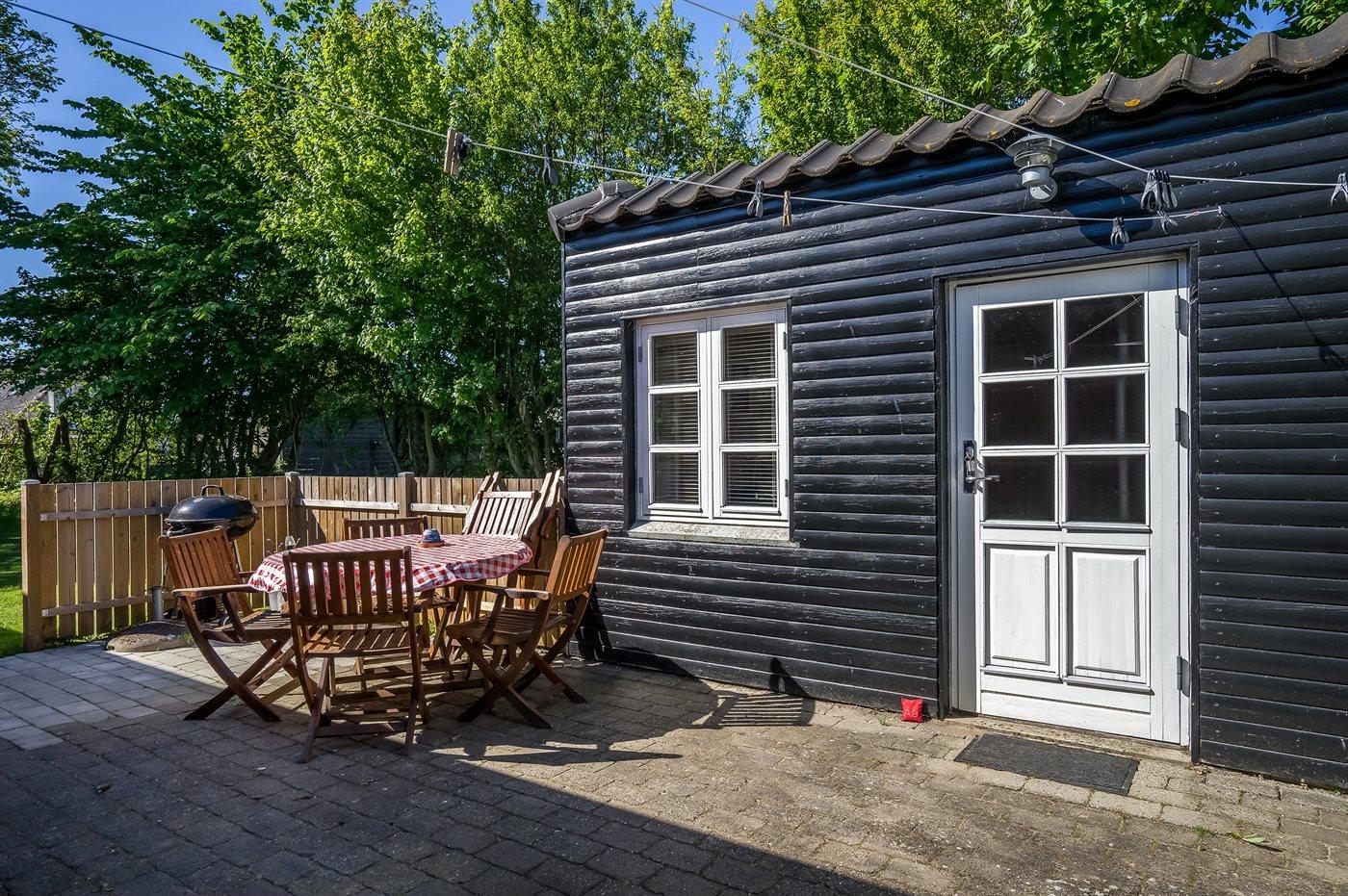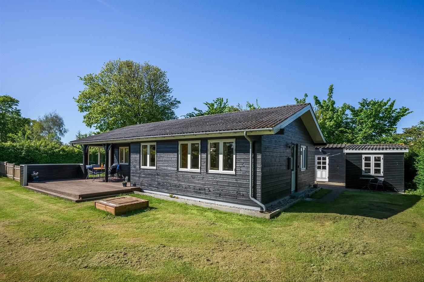 Hyggeligt sommerhus nær børnevenlig strand med anneks, indhegnet have og terrasse i Hals, Hou.