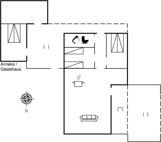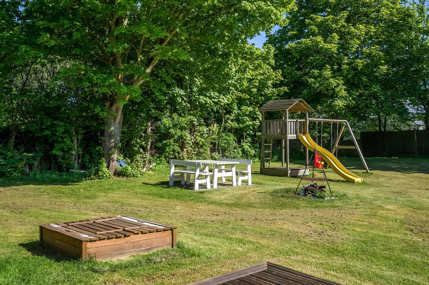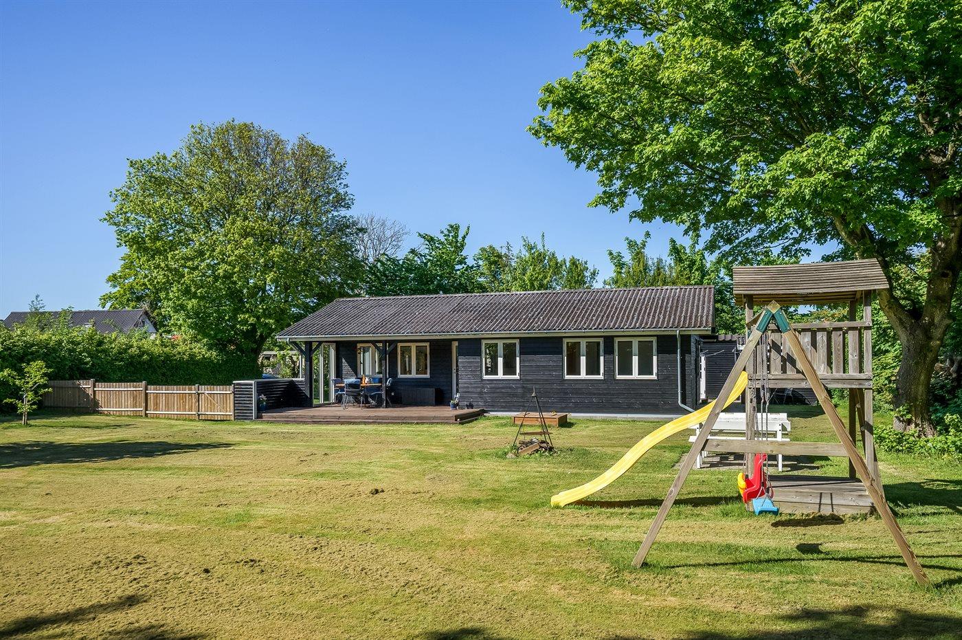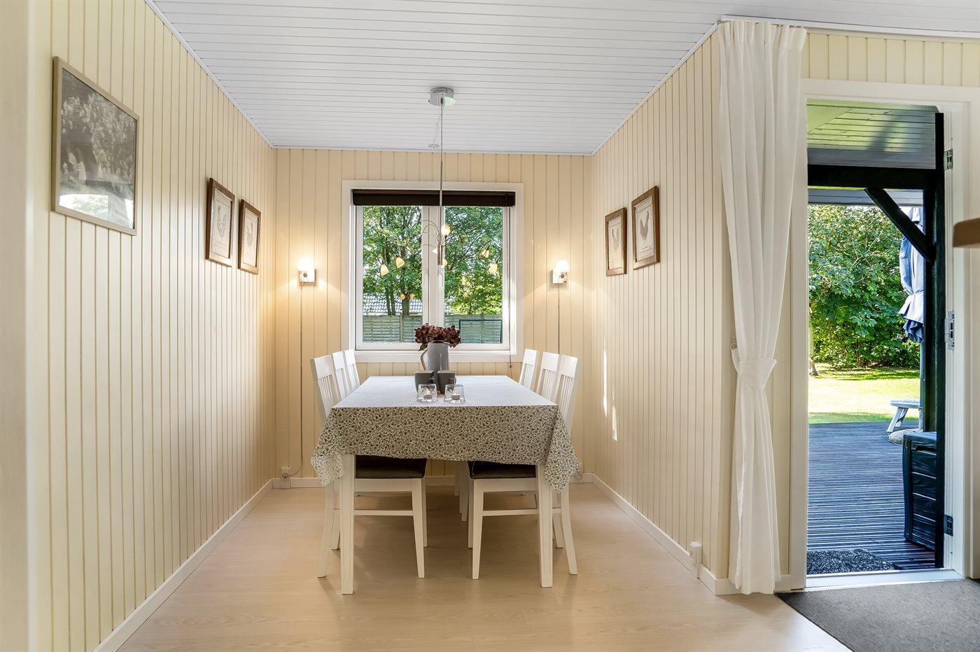 Ikke langt fra børnevenlig badestrand ligger dette sommerhus på en indhegnet grund med plads til leg. Til huset hører såvel åben som overdækket terrasse samt et anneks, som er indrettet med dobbeltseng.
