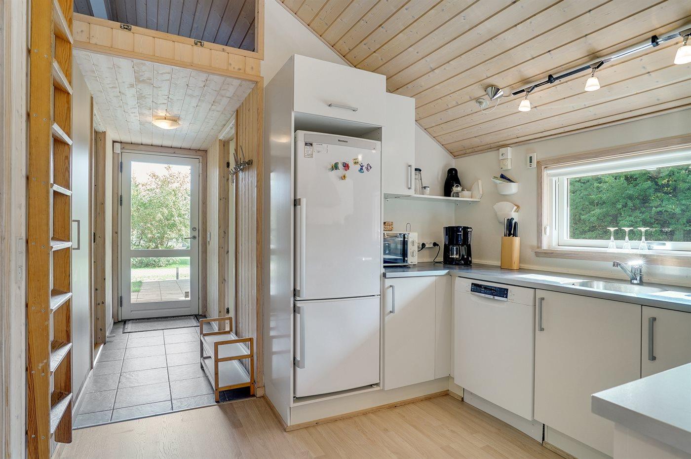 Køkkenet er udstyret med 1 køleskab. Der er 4 keramiske kogeplader, varmluftovn, mikrobølgeovn samt opvaskemaskine.