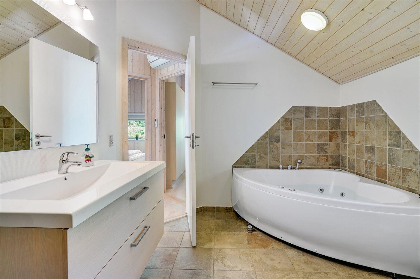 Der er 2 badeværelser med bruseniche og 2 toiletter. Der er gulvvarme på 2 badeværelser. I saunaen er der mulighed for afslapning.