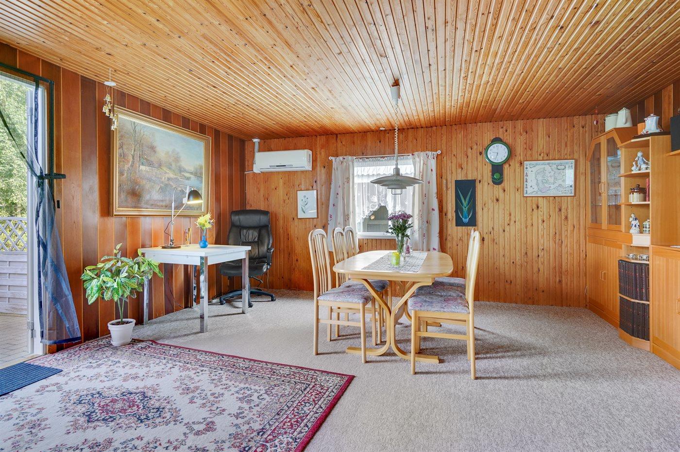 Sommerhuset egner sig til 6 personer. Ferieboligen er på 104 m² og er bygget i 1972. Det er tilladt at medbringe 1 husdyr. Ferieboligen er udstyret med 1 energivenlig luft til luft varmepumpe. Ferieboligen har vaskemaskine. Frysekapacitet på 30 liter. Der er desuden brændeovn.