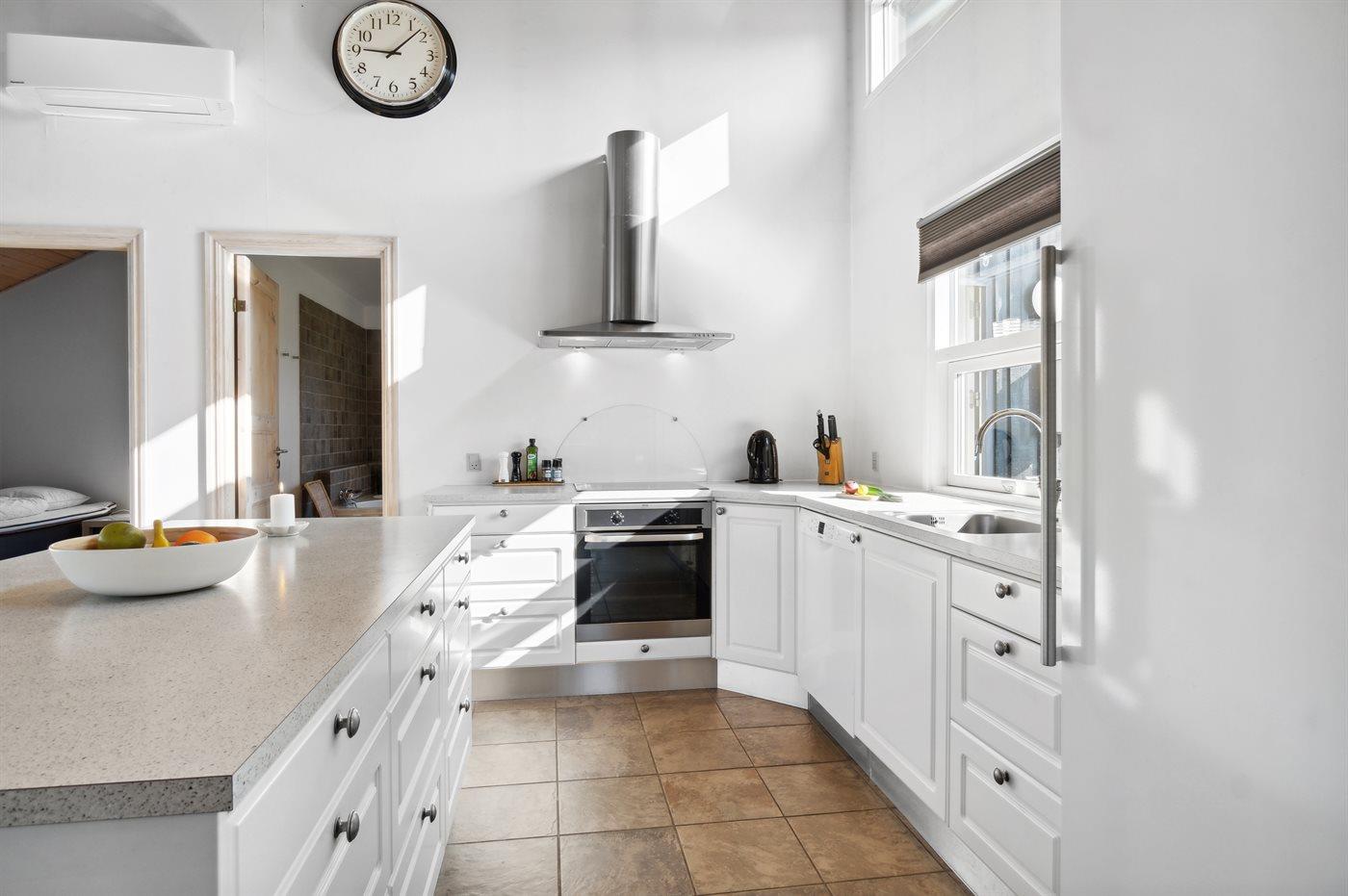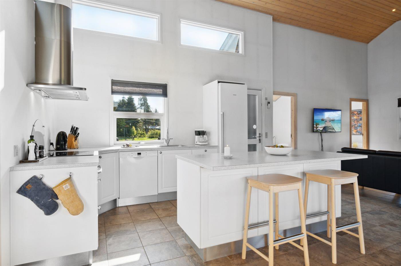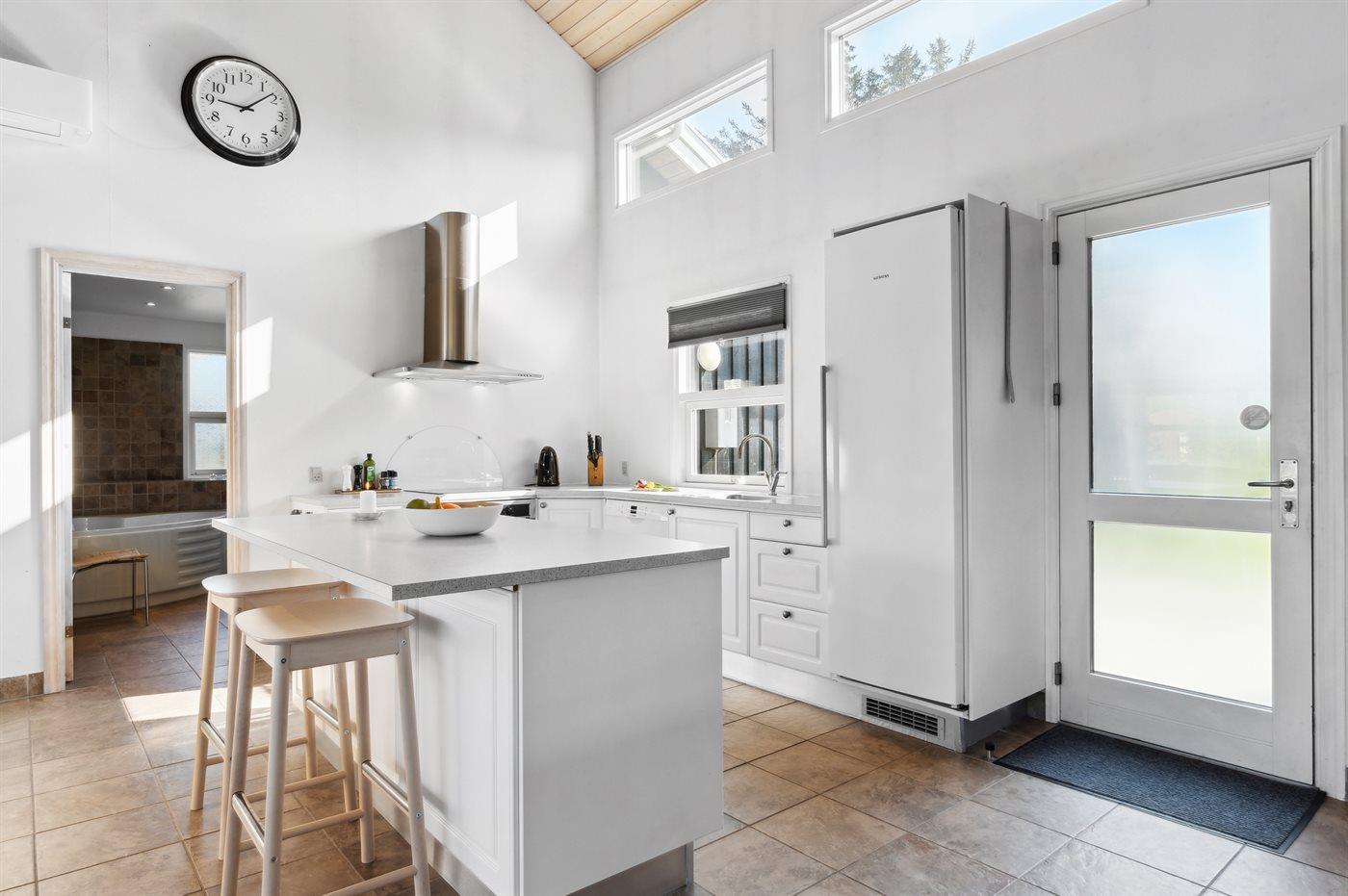 Køkkenet er udstyret med 2 køleskabe. Der er 4 induktionskogeplader, varmluftovn, mikrobølgeovn samt opvaskemaskine.