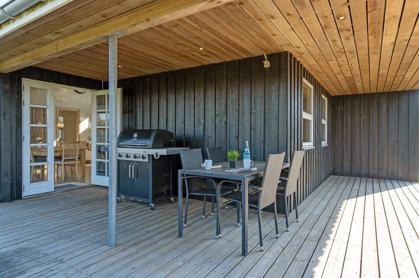 Ferieboligen er beliggende på en 1300 m² stor naturgrund. Der er 800 m til havet. Nærmeste forretning er beliggende i en afstand af 1500 m. Der er en golfbane i en afstand af 6000 m. Til ferieboligen hører åbent terrasseareal. Desuden er der overdækket terrasse. Fodboldmål. Der ligger en legeplads i en afstand af 300 m. Bålsted. Grill til rådighed. Parkering ved ferieboligen.