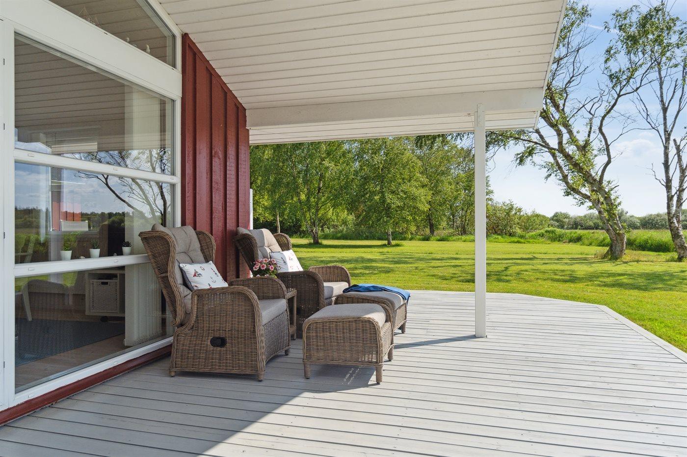 Dette særdeles velholdte og flotte sommerhus er beliggende ganske enestående med en fantastisk udsigt udover skov og marker - det er ganske enkelt svært at finde bedre. Sommerhuset ligger helt ugeneret på en stor grund i disse meget rolige og smukke omgivelser. Udsigten er virkelig fangende, og man kan sidde på den store terrasse i timevis og nyde udsigten. Den skønne udsigt omkranser nærmest sommerhuset og er lige så unik inde fra selve sommerhuset. Terrassen har også en overdækket del, som kan forlænge de skønne sommeraftener.