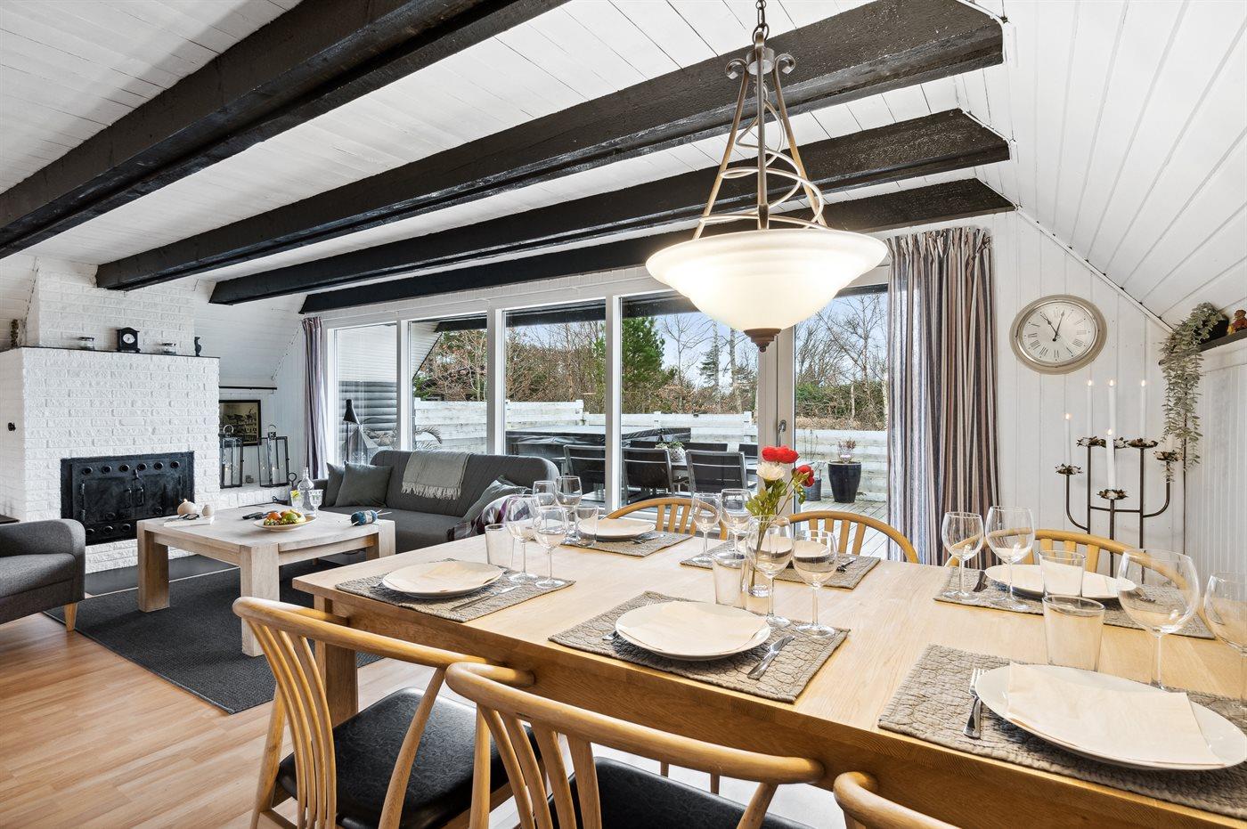 Sommerhuset har en god planløsning og passer rigtig fint til én familie eller flere par. Sommerhuset tilbyder masser af muligheder for hyggelige stunder med familien, da her findes et særskilt aktivitetsrum med bl.a. bordfodbold og dart. Så hvis vejret ikke tillader en tur til stranden, kan I hygge i aktivitetsrummet.
