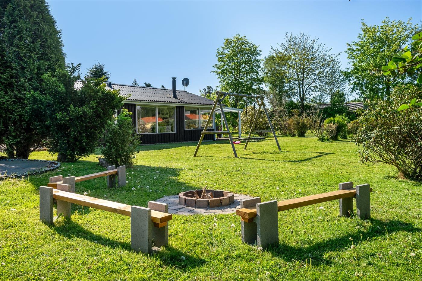 Ferieboligen er beliggende på en 1413 m² stor havegrund. Der er 400 m til havet. Der er 7050 m til fjorden. Nærmeste forretning er beliggende i en afstand af 810 m. Der er en golfbane i en afstand af 6560 m. Til ferieboligen hører åbent terrasseareal. Desuden er der overdækket terrasse. Gynge. Sandkasse. Trampolin. Der ligger en legeplads i en afstand af 900 m. Bålsted. Grill til rådighed. Der er installeret stik til opladning af elbil. Type 2 stik. Med 22 kW ladeeffekt. Parkering ved ferieboligen.