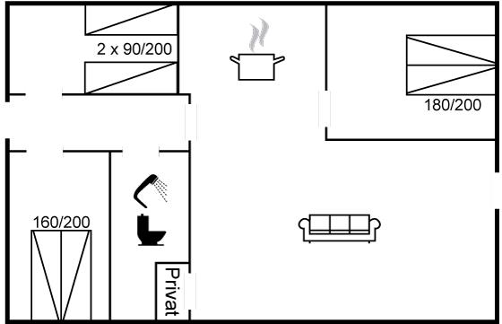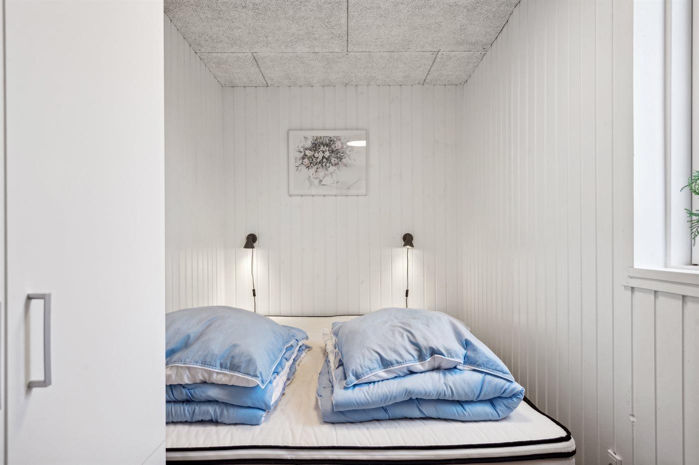 Der er i alt 3 soveværelser. Sovepladserne fordeler sig på: 4 sovepladser i dobbeltsenge. 2 sovepladser i enkeltsenge. Derudover er der 1 stk. barneseng.