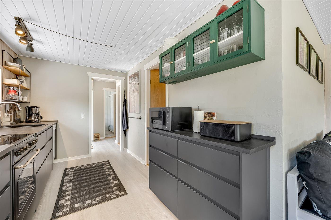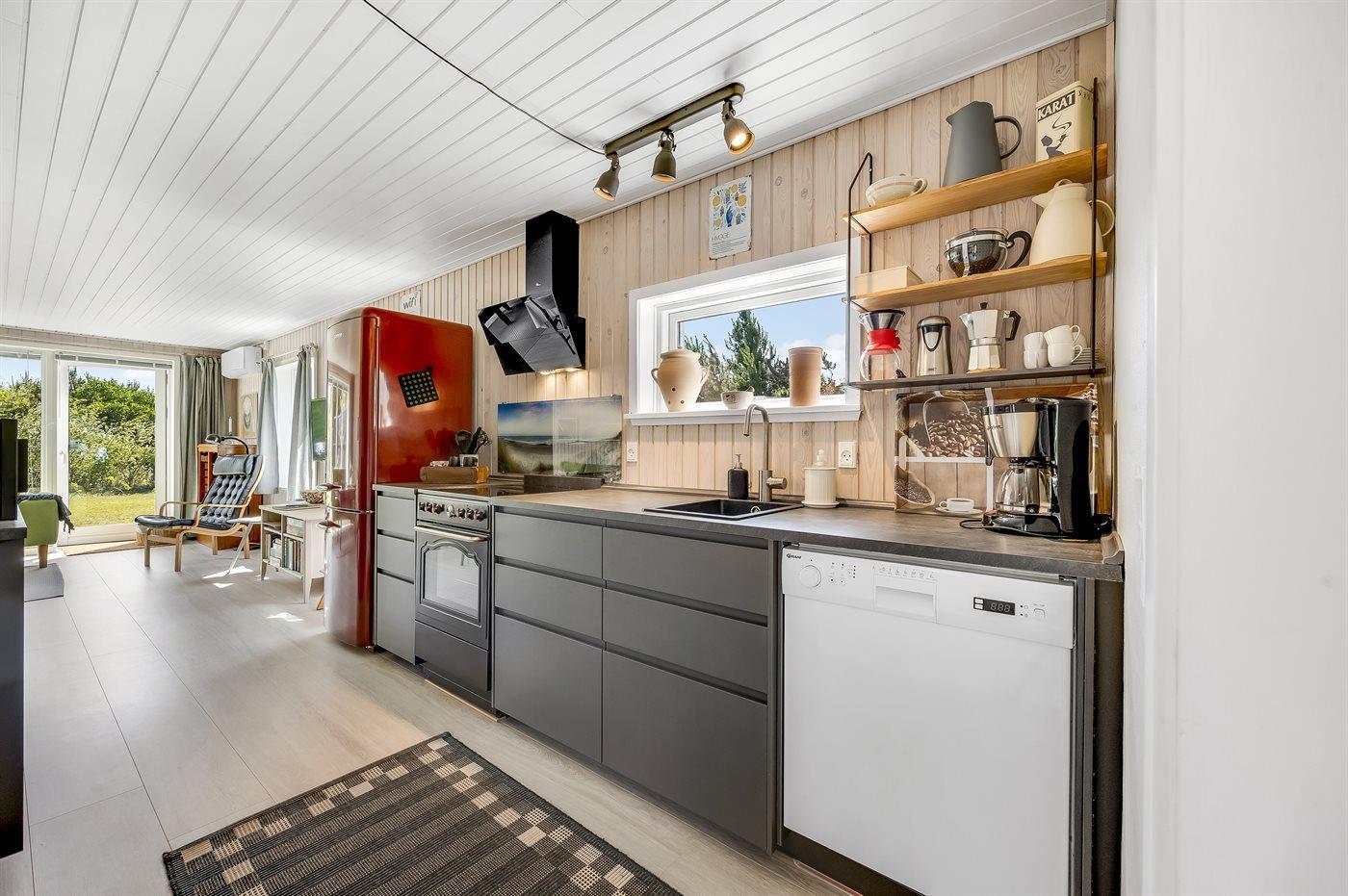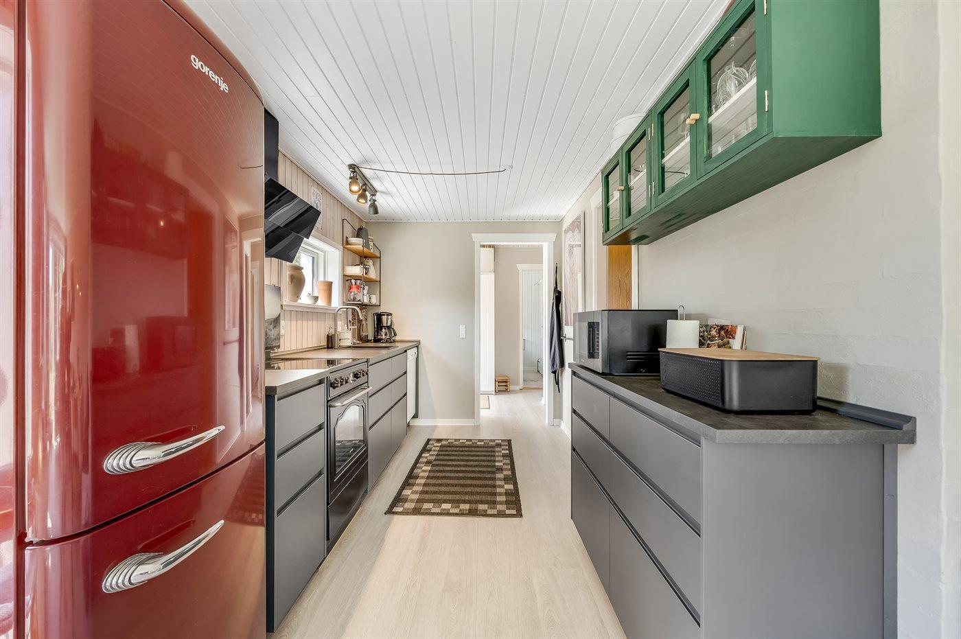 Køkkenet er udstyret med 1 køleskab. Der er 4 keramiske kogeplader, varmluftovn, mikrobølgeovn samt opvaskemaskine.