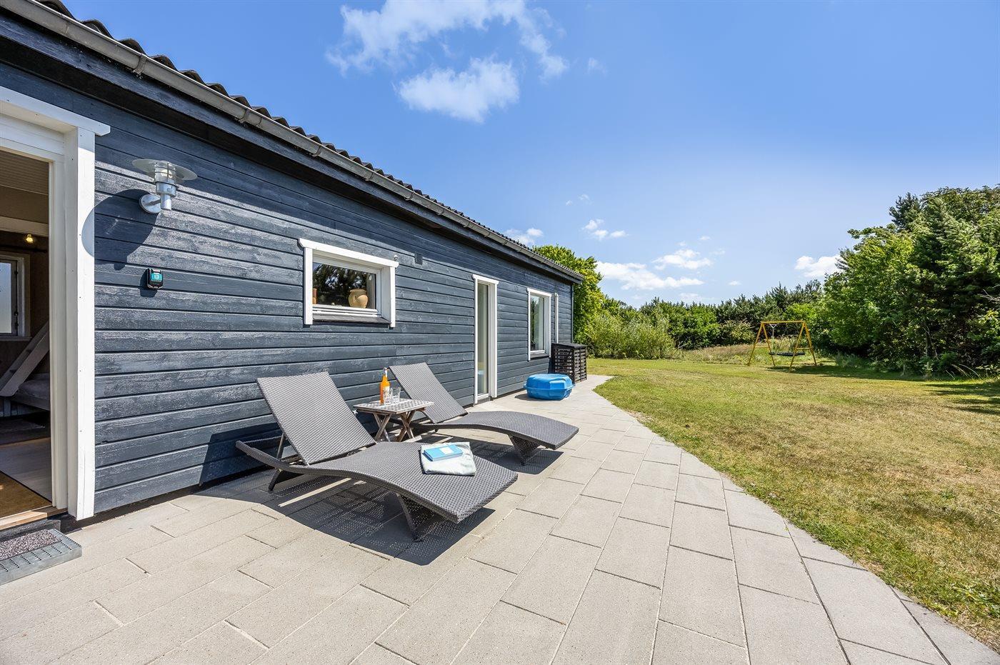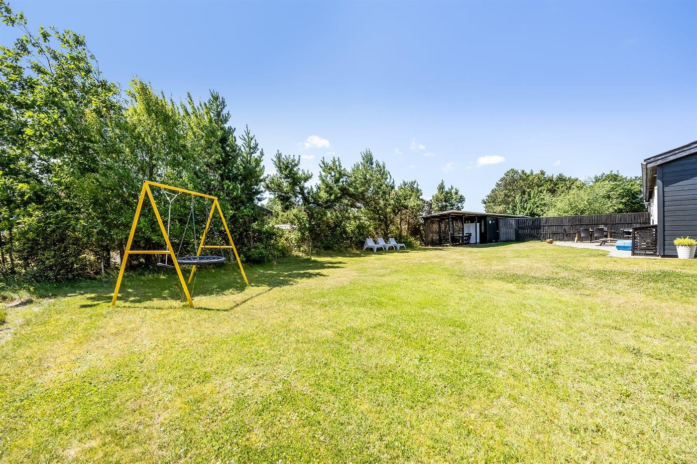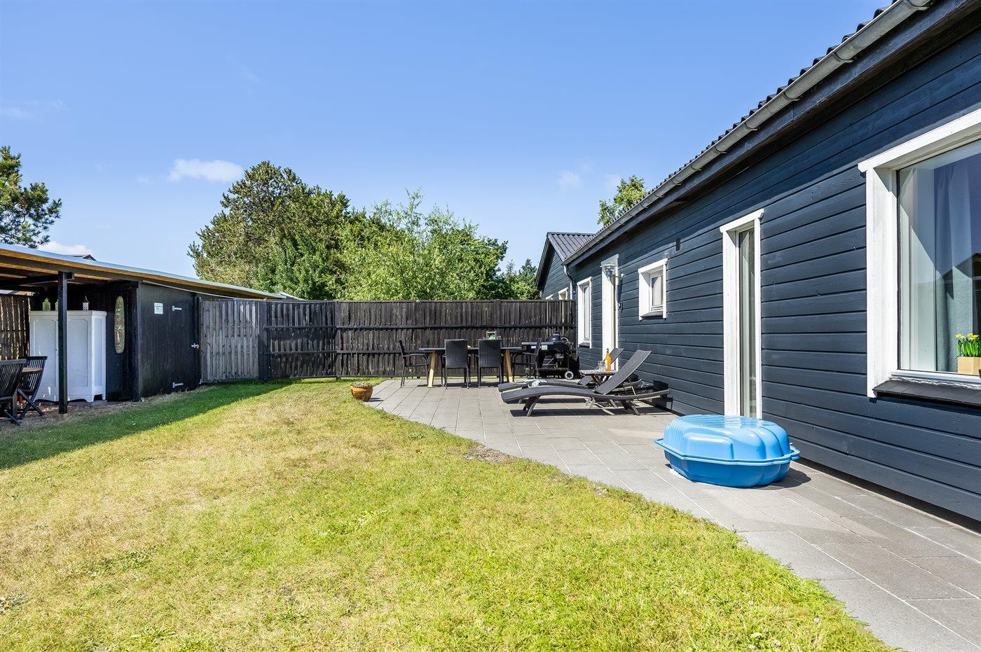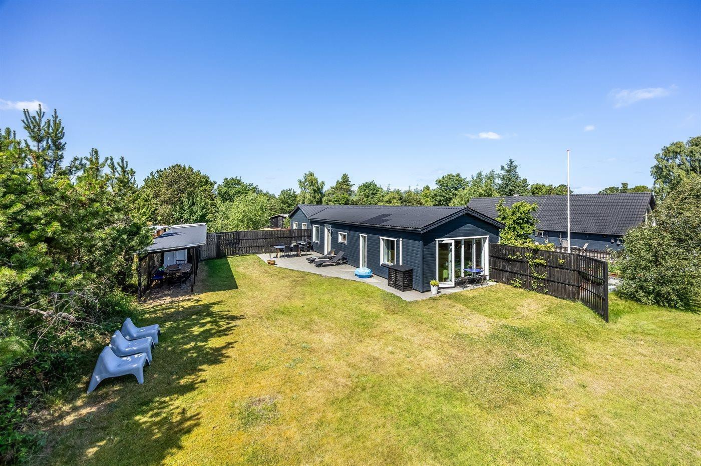 Ferieboligen er beliggende på en 550 m² stor naturgrund. Der er 450 m til havet. Der er 7300 m til fjorden. Nærmeste forretning er beliggende i en afstand af 550 m. Der er en golfbane i en afstand af 6800 m. Til ferieboligen hører åbent terrasseareal. Desuden er der overdækket terrasse. Grill til rådighed. Parkering ved ferieboligen.