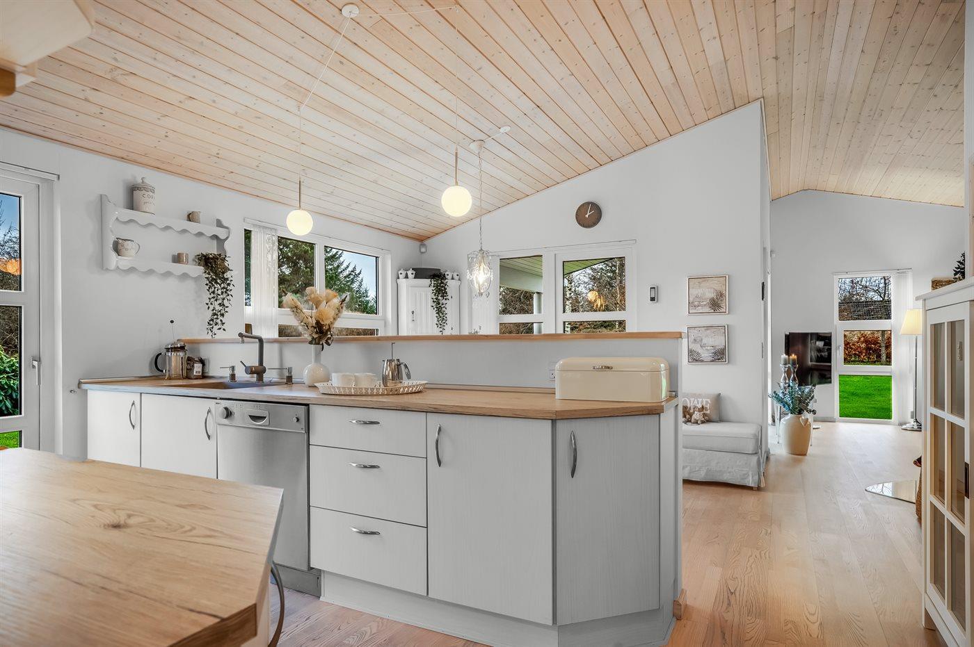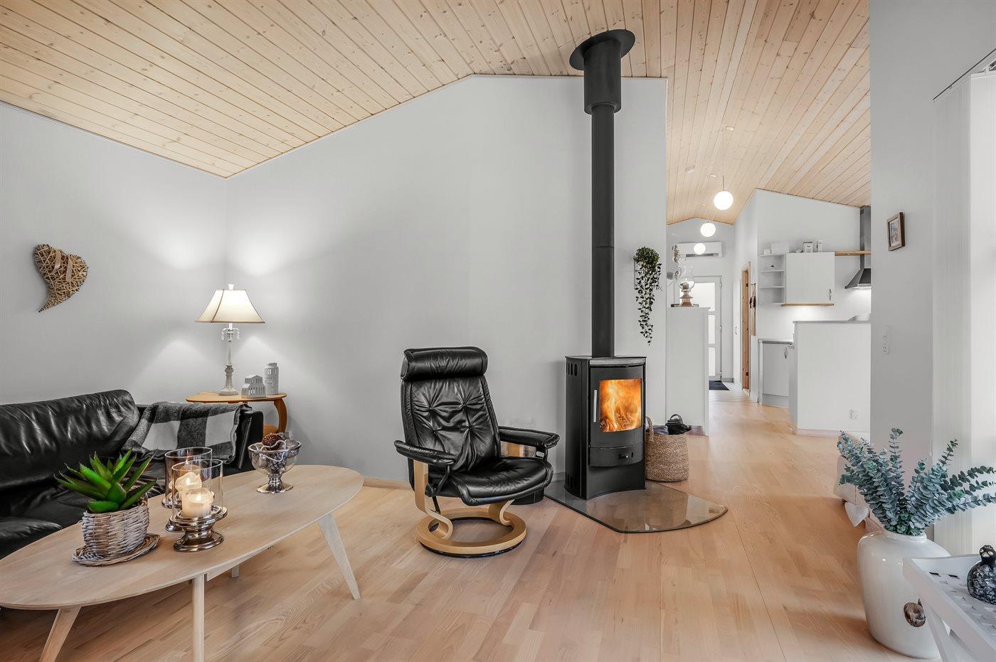 I køkkenet finder I alle nødvendige faciliteter, herunder køleskab, fryser, kogeplade, ovn og opvaskemaskine, så madlavningen bliver nem og bekvem. Stuen byder på varmepumpe, brændeovn, TV med Apple TV og streaming-muligheder, så hyggen er garanteret uanset vejret.