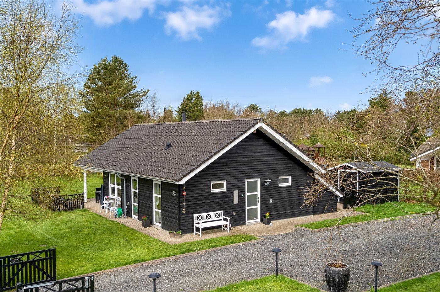 Ferieboligen er beliggende på en 1264 m² stor havegrund. Der er 1500 m til havet. Der er 7400 m til fjorden. Nærmeste forretning er beliggende i en afstand af 1100 m. Der er en golfbane i en afstand af 6500 m. Til ferieboligen hører åbent terrasseareal. Desuden er der overdækket terrasse. Grill til rådighed. Parkering ved ferieboligen.