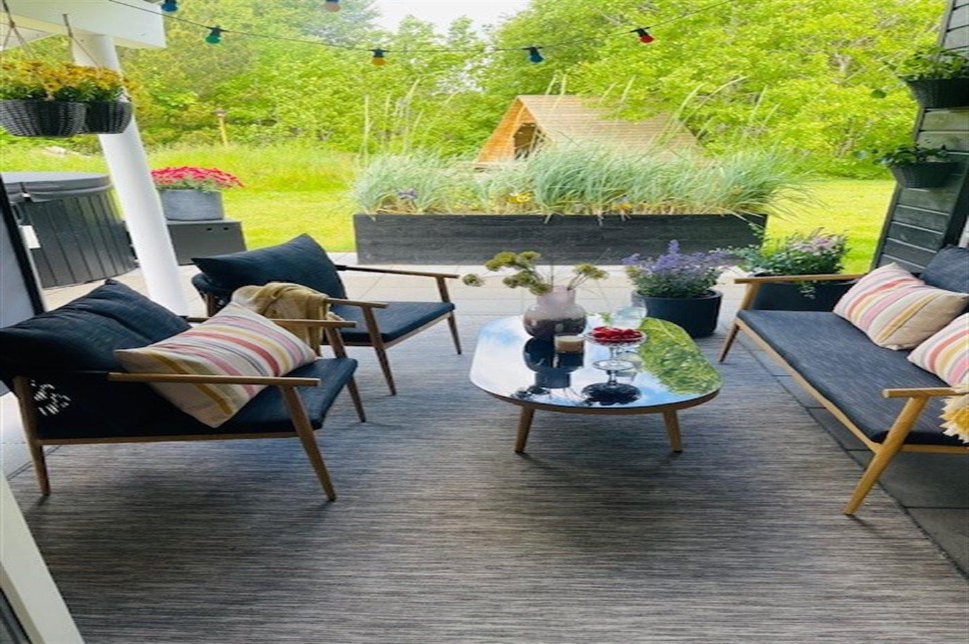 Sommerhuset er omgivet af store, solrige terrasser, ideel til både grillmiddage og afslapning. For familiens yngste og dem, der elsker udelivet, er der masser af aktiviteter: sandkasse, shelter, bålplads og et fodboldmål, som alle inviterer til sjov og leg.