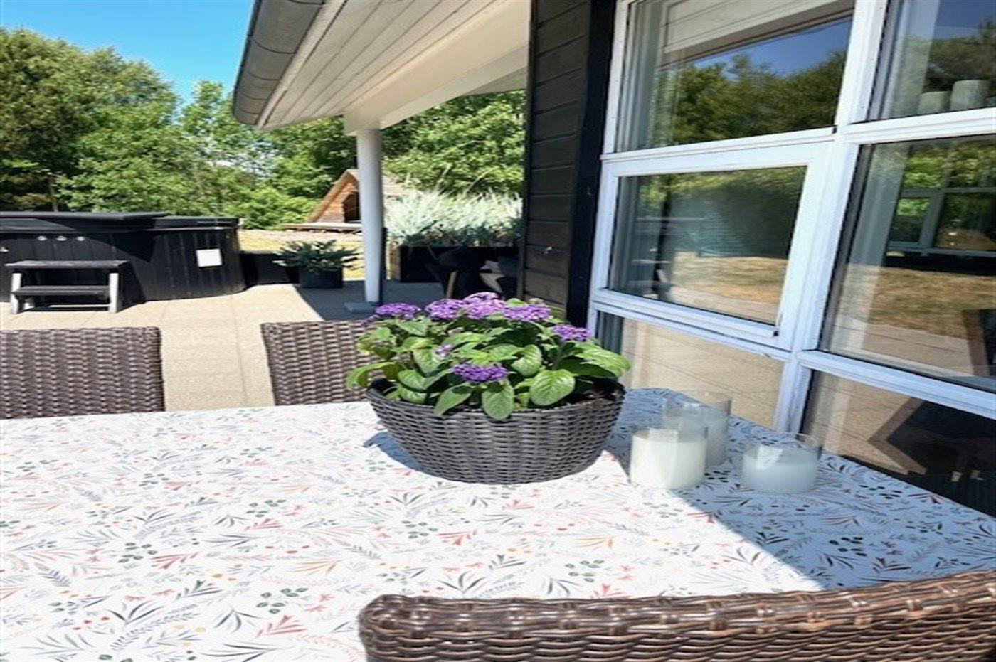 Dette skønne sommerhus byder på wellness og hygge i dejlige omgivelser, her kan du fx slappe af i husets indendørs spa eller nyde det udendørs spa under åben himmel. Som gæst har du derudover adgang til et fælleshus med en stor indendørs pool (5 x 6 m), sauna og baderum – perfekt til afslappende stunder for hele familien. Ved fælleshuset findes desuden to el-ladestandere til opladning af elbil.