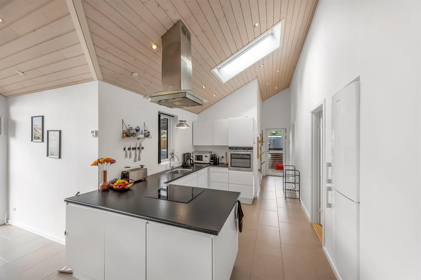 Køkkenet er udstyret med 1 køleskab. Der er 4 induktionskogeplader, varmluftovn, mikrobølgeovn samt opvaskemaskine.