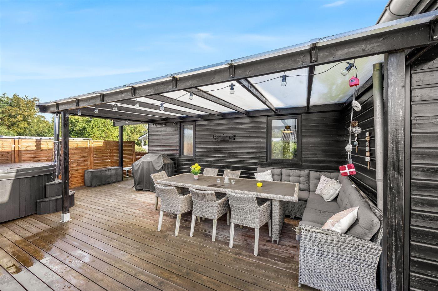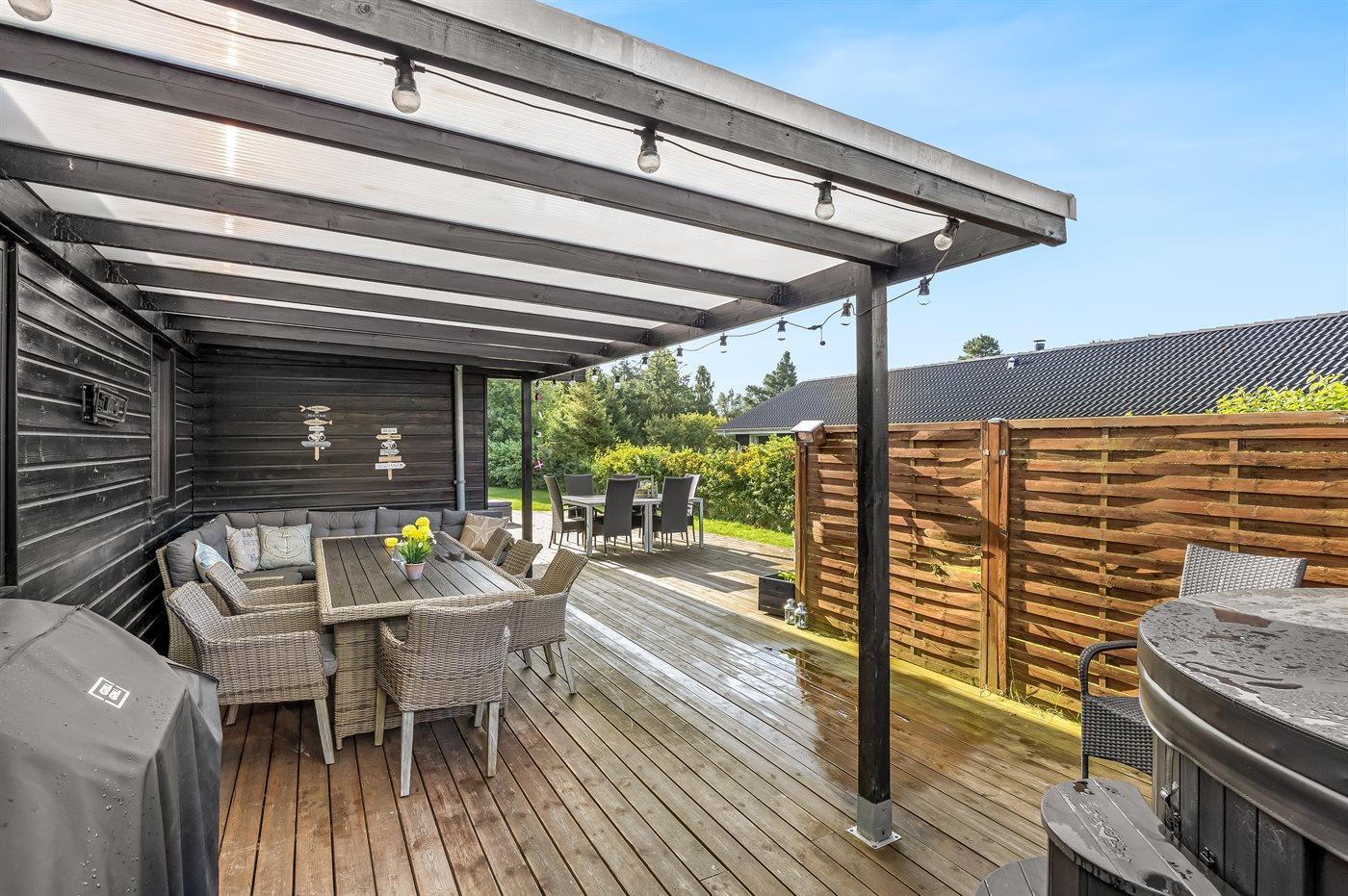 Til huset hører én stor, solrig terrasse samt to overdækkede terrasser, så der altid er mulighed for at nyde udelivet – uanset vejr og vind.