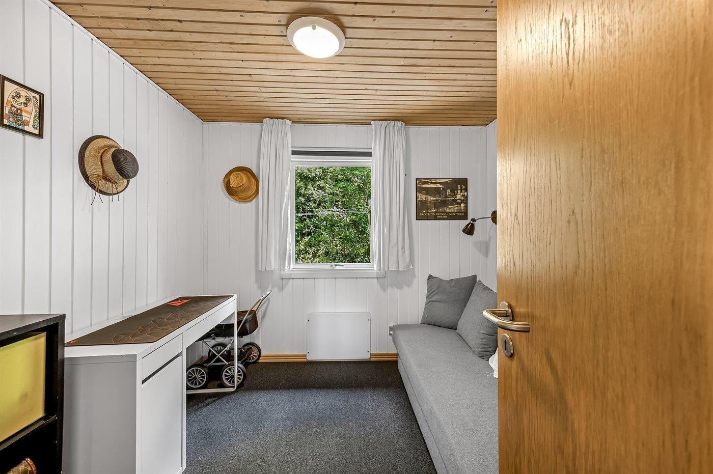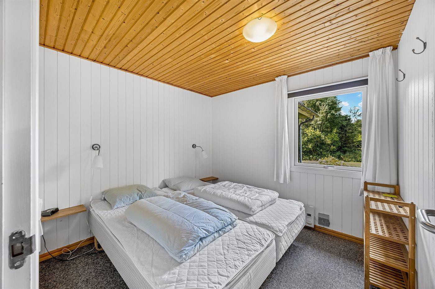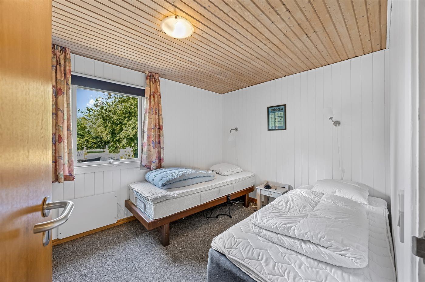 Der er i alt 3 soveværelser. Sovepladserne fordeler sig på: 2 sovepladser i dobbeltseng. 1 soveplads i enkeltseng. 1 soveplads i elevationsseng. 2 sovepladser i sovesofa (dobbelt). Derudover er der 1 stk. barneseng.