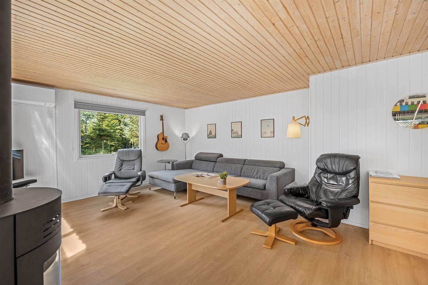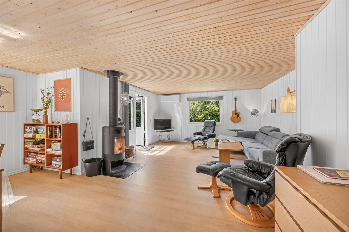 Sommerhuset egner sig til 6 personer. Ferieboligen er på 91 m² og er bygget i 1980.. Det er tilladt at medbringe 2 husdyr. Ferieboligen er udstyret med 1 energibesparende luft til luft varmepumpe. Ferieboligen har vaskemaskine. Tørretumbler. Frysekapacitet på 130 liter. Der er desuden brændeovn. Til de små er der 1 stk. barnestol.