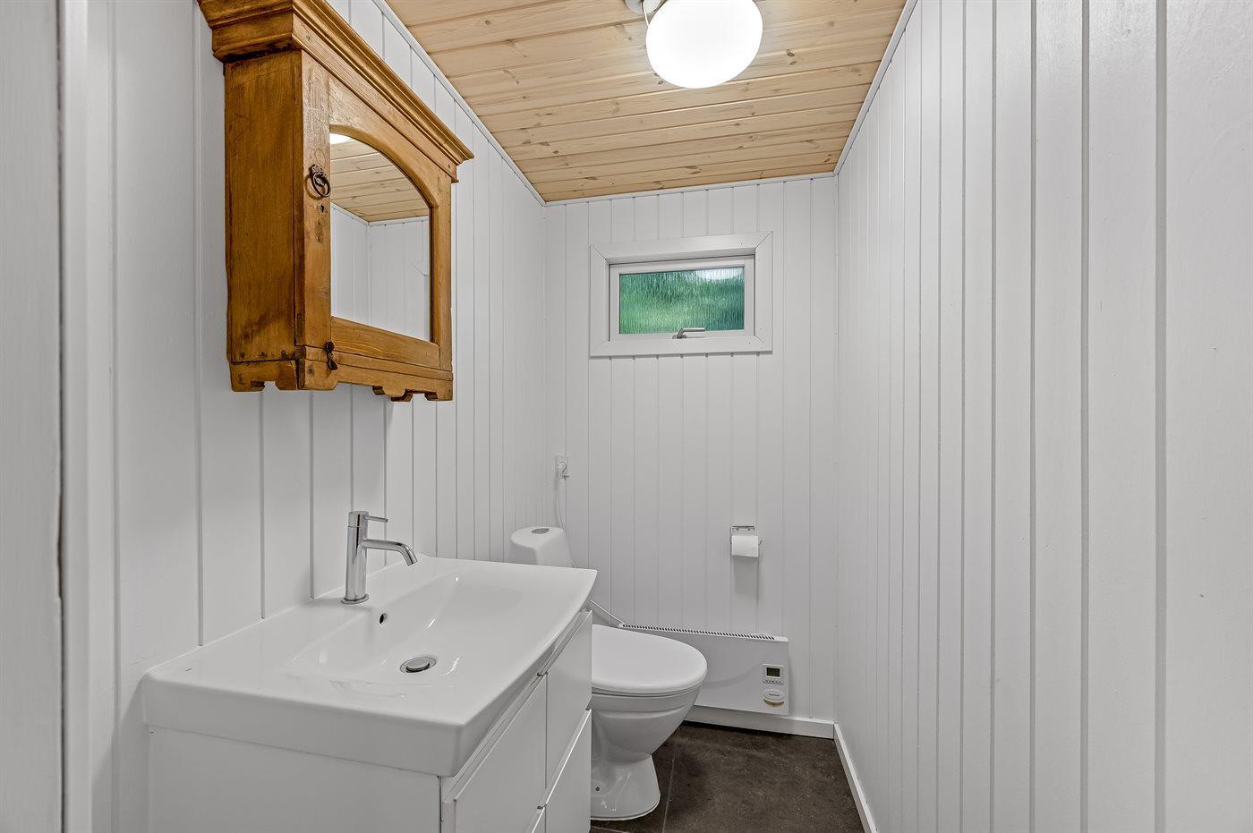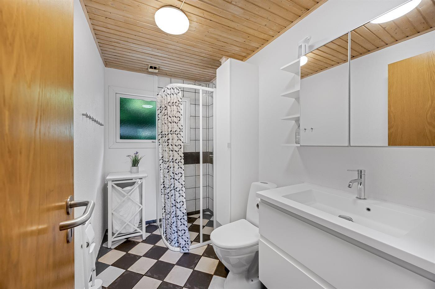Der er 1 badeværelse med bruseniche og 2 toiletter, heraf 1 gæstetoilet.
