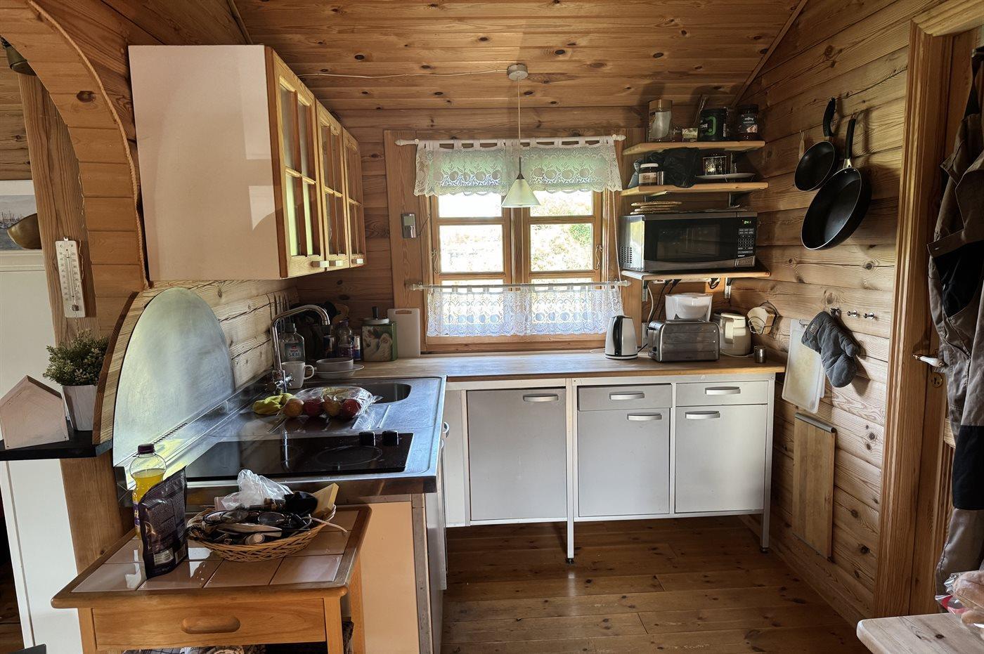 Køkkenet er udstyret med 1 køleskab. Der er 2 keramiske kogeplader, varmluftovn, Airfryer.